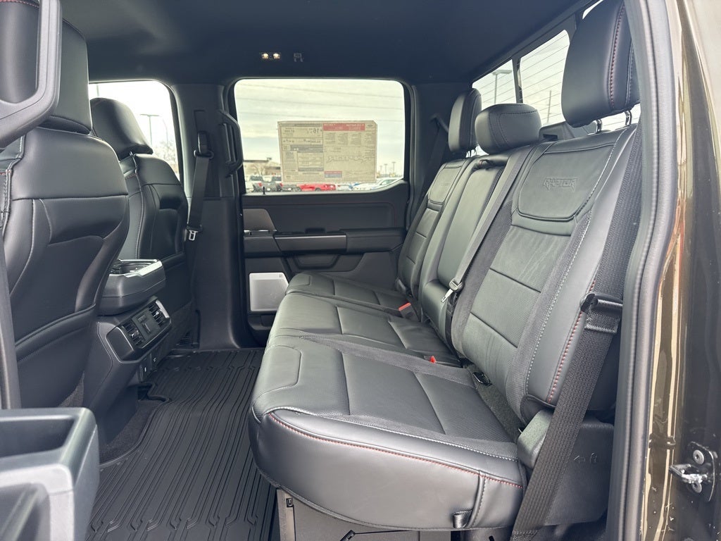 $2,000 - Exp. 05/31/2026 Equipment Group 801A Standard, 14 Speakers, 17 Cast Aluminum Wheels, 4-Wheel Disc Brakes, ABS brakes, Adjustable pedals, Air Conditioning, Alloy wheels, AM/FM radio: SiriusXM with 360L, Auto High-beam Headlights, Auto tilt-away steering wheel, Auto-dimming door mirrors, Auto-dimming Rear-View mirror, Automatic temperature control, Brake assist, Bumpers: body-color, Compass, Delay-off headlights, Driver door bin, Driver vanity mirror, Dual front impact airbags, Dual front side impact airbags, Electronic Locking w/4.10 Axle Ratio, Electronic Stability Control, Emergency communication system: SYNC 4 911 Assist, Front anti-roll bar, Front Bucket Seats, Front Center Armrest, Front dual zone A/C, Front fog lights, Front License Plate Bracket, Front reading lights, Front wheel independent suspension, Fully automatic headlights, Garage door transmitter, Heads-Up Display, Heated door mirrors, Heated front seats, Heated rear seats, Heated steering wheel, Illuminated entry, Internet access capable: FordPass Connect 5G, Lane Departure Warning System, Leather steering wheel, Leather Trimmed Seats, Low tire pressure warning, Memory seat, Navigation system: Connected Navigation, Occupant sensing airbag, Outside temperature display, Overhead airbag, Overhead console, Panic alarm, Passenger door bin, Passenger vanity mirror, Pedal memory, Power door mirrors, Power driver seat, Power passenger seat, Power steering, Power windows, Radio data system, Radio: B&O Unleashed Sound System by Bang & Olufsen, Rain sensing wipers, Rear reading lights, Rear step bumper, Rear window defroster, Remote keyless entry, Security system, Speed control, Speed-sensing steering, Split folding rear seat, Steering wheel memory, Steering wheel mounted audio controls, SYNC 4 w/Enhanced Voice Recognition, Tachometer, Telescoping steering wheel, Tilt steering wheel, Traction control, Trip computer, Turn signal indicator mirrors, Variably intermittent wipers, Ventilated front seats, Equipment Group 801A Standard. 2025 Ford F-150 Raptor 4WD