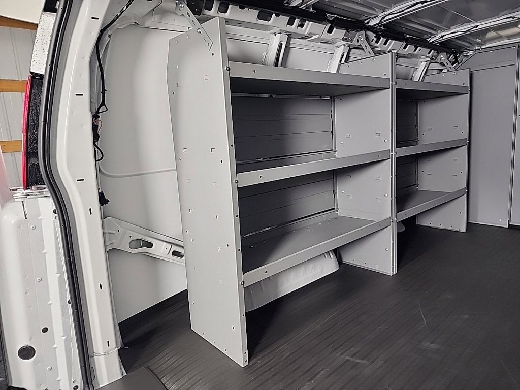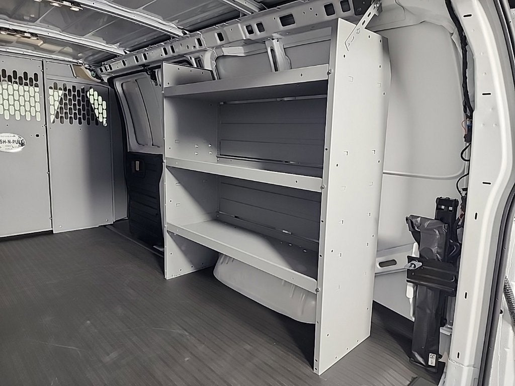 2025 Chevrolet Express 3500 Work Van Cargo 16 x 6.5 Steel Wheels, 2 Speakers, 220 Amps Alternator, 3.42 Rear Axle Ratio, 4-Wheel Disc Brakes, ABS brakes, Air Conditioning, AM/FM radio, AM/FM Stereo w/MP3 Player, Cruise Control, Delay-off headlights, Driver & Front Passenger High-Back Bucket Seats, Driver & Front Passenger Vinyl Visors, Driver Convenience Package, Driver door bin, Driver's Seat Mounted Armrest, Dual front impact airbags, Dual front side impact airbags, Electronic Stability Control, Exterior Parking Camera Rear, Front anti-roll bar, Front Bucket Seats, Front Reclining High-Back Bucket Seats, Front wheel independent suspension, Full-Length Black Rubberized-Vinyl Floor Covering, Fully automatic headlights, Heated door mirrors, Heavy-Duty Rear Locking Differential, Low tire pressure warning, Occupant sensing airbag, Outside Temperature Display, Overhead airbag, Passenger cancellable airbag, Passenger door bin, Passenger seat mounted armrest, Power door mirrors, Power steering, Power windows, Preferred Equipment Group 1WT, Remote Keyless Entry, Single-Zone Manual Air Conditioning, Tachometer, Theft Alarm Notification, Tilt Steering Wheel, Traction control, Trip computer, Variably intermittent wipers, Vinyl Seat Trim, Voltmeter. RWD Automatic with Overdrive 6.6L V8
