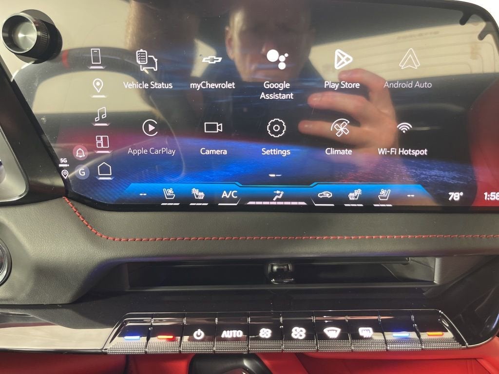2026 Chevrolet Corvette Z06 3LZ 14 Speakers, 2 Cargo Nets, 2-Tone Seats, 3-Stanchion High Wing Spoiler (LPO), 4-Wheel Disc Brakes, 8-Way Power Driver Seat Adjuster, 8-Way Power Passenger Seat Adjuster, ABS brakes, Adaptive suspension, Air Conditioning, Alloy wheels, AM/FM radio: SiriusXM, Auto High-beam Headlights, Auto-dimming door mirrors, Auto-dimming Rear-View mirror, Automatic Leveling System Headlamp Control, Automatic temperature control, Battery Protection Package, Black Exhaust Tips, Bose Performance Series Sound System with 14 Speakers, Brake assist, Bright Red-Painted Calipers, Bumpers: body-color, Carbon Fiber/Sueded Microfiber-Wrapped Steering Wheel, Carbon Flash Metallic Painted Outside Mirrors, Carbon Flash Metallic-Painted Outside Mirrors, Carbon-Flash Painted Carbon Fiber Ground Effects, Compass, Convertible HardTop, Convertible roof lining, Convertible Top with Carbon Flash Nacelles and Roof, Custom Leather Wrapped Interior Package, Delay-off headlights, Driver door bin, Driver Power Bolster Seat Adjuster, Driver vanity mirror, Dual front impact airbags, Dual front side impact airbags, Electrical Theft Deterrent System, Electronic Stability Control, Emergency communication system: OnStar and Chevrolet connected services capable, Exterior Parking Camera Rear, Four wheel independent suspension, Front anti-roll bar, Front Bucket Seats, Front Center Armrest, Front dual zone A/C, Front Lift Adjustable Height with Memory, Front Radiator Grille Screens, Front reading lights, Fully automatic headlights, Garage door transmitter, Glass rear window, Grille Screen Protection Package, GT2 Bucket Seats, HD Front and Rear Vision Cameras, Heads-Up Display, Heated and Vented Driver and Passenger Seats, Heated door mirrors, Heated front seats, Heated Steering Wheel, Heated steering wheel, Illuminated entry, Insect Protection Grille Screen, Integrated roll-over protection, Leather Shift Knob, Leather steering wheel, Low tire pressure warning, Memory Driver and Passenger Convenience Package, Memory seat, Mobile Service Plus, Napa Leather Seating Surfaces with Perforated Inserts, Navigation System, Occupant sensing airbag, Outside temperature display, Overhead console, Panic alarm, Passenger door bin, Passenger Power Bolster Seat Adjuster, Passenger vanity mirror, Performance Data and Video Recorder, Power convertible roof, Power door mirrors, Power Driver Lumbar Control Seat Adjuster, Power driver seat, Power Passenger Lumbar Control Seat Adjuster, Power passenger seat, Power steering, Power windows, Power-Adjustable Outside Heated Mirrors, Premium audio system: Chevrolet Infotainment 3 Premium, Radio data system, Radio: Infotainment System with Google Built-in, Rear anti-roll bar, Rear Cross Traffic Alert, Rear window defroster, Remote keyless entry, Security system, Side Blind Zone Alert, Speed control, Speed-sensing steering, Spoiler, Sport steering wheel, Stealth Interior Trim Package, Steering wheel memory, Steering wheel mounted audio controls, Sueded Microfiber-Wrapped Upper Interior Trim Package, Tachometer, Telescoping steering wheel, Tilt steering wheel, Torch Red Seat Belt Color, Traction control, Trip computer, Turn signal indicator mirrors, Universal Home Remote, Variably intermittent wipers, Vehicle Inclination Theft Deterrent Sensor, Vehicle Interior Movement Theft Deterrent Sensor, Ventilated front seats, Voltmeter, Wheels: 20 x 10 Front and 21 x 13 Rear Black, Wheels: 20 x 10 Front and 21 x 13 Rear Titanium Satin, Wireless Phone Charging. RWD 8-Speed Dual Clutch 5.5L V8