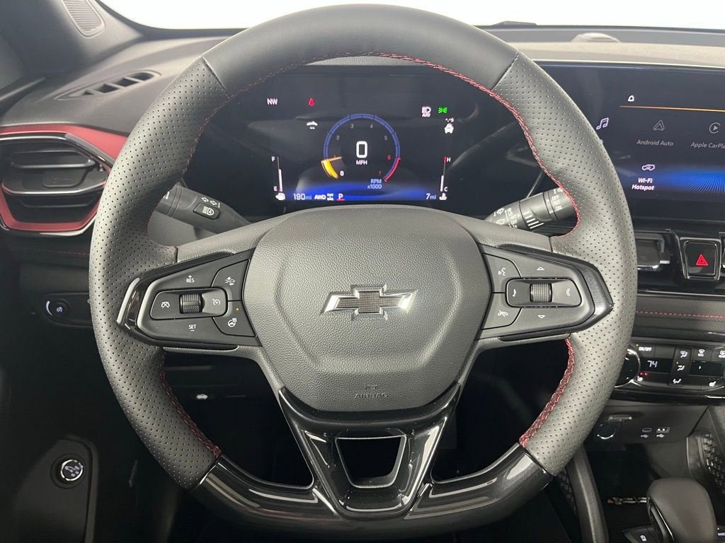 2026 Chevrolet TrailBlazer RS 1 Type-A and 1 Type-C USB Charging-Only Ports, 1 Type-A and 1 Type-C USB Ports, 120-Volt Power Outlet, 2-Way Power Driver Lumbar Seat Adjuster, 3.17 Final Drive Axle Ratio, 4-Way Manual Front Passenger Seat Adjuster, 4-Wheel Disc Brakes, 6 Speakers, 6-Speaker Audio System Feature with Amplifier, 8-Way Power Driver Seat Adjuster, ABS brakes, Adaptive Cruise and Sound Package, Adaptive Cruise Control, Air Conditioning, Alloy wheels, AM/FM radio: SiriusXM, Auto High-beam Headlights, Bose Premium 7-Speaker Audio System Feature, Brake assist, Bumpers: body-color, Cabin Humidity Sensor, Compass, Convenience Package, Delay-off headlights, Driver and Front Passenger Illuminated Vanity Mirrors, Driver Confidence Package, Driver door bin, Driver vanity mirror, Dual front impact airbags, Dual front side impact airbags, Dual-Pane Panoramic Power Sunroof, Electronic Stability Control, Emergency communication system: OnStar and Chevrolet connected services capable, Evotex Seat Trim, Exterior Parking Camera Rear, Flat-Folding Front Passenger Seatback, Front anti-roll bar, Front Bucket Seats, Front Center Armrest, Front reading lights, Front wheel independent suspension, Fully automatic headlights, Hands Free Power Programmable Liftgate, Heated door mirrors, Heated Driver and Front Passenger Seats, Heated front seats, Heated steering wheel, Illuminated entry, Inside Rear-View Auto-Dimming Mirror, Knee airbag, Lane Change Alert with Side Blind Zone Alert, Low tire pressure warning, Mobile Service Plus, Occupant sensing airbag, Overhead airbag, Overhead console, Panic alarm, Passenger door bin, Passenger vanity mirror, Power door mirrors, Power driver seat, Power steering, Power windows, Radio data system, Radio: AM/FM Stereo Audio System, Rear Cross Traffic Alert, Rear Park Assist, Rear seat center armrest, Rear side impact airbag, Rear window defroster, Rear window wiper, Remote keyless entry, Ride and Handling Suspension, Security system, Single-Zone Automatic Climate Control, SiriusXM Trial Subscription, Speed control, Split folding rear seat, Spoiler, Steering wheel mounted audio controls, Tachometer, Telescoping steering wheel, Tilt steering wheel, Traction control, Trip computer, Variably intermittent wipers, Wheels: 19 High Gloss Black Machined Aluminum, Wireless Apple CarPlay/Android Auto, Wireless Charging. AWD 9-Speed Automatic 1.3L I3 Turbocharged DOHC 12V LEV3-SULEV30 155hp