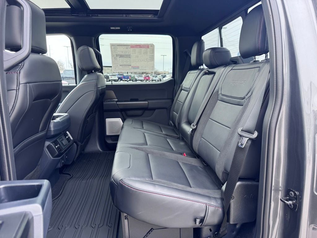 17 Cast Aluminum Wheels, Electronic Locking with 4.10 Axle Ratio, Equipment Group 801A Standard, Ford Connectivity Package (1-Year Included), Internet access capable: 5G Modem - Ford Connectivity Package, Leather Trimmed Seats, Radio: B&O Unleashed Sound System by Bang & Olufsen, SYNC 4 with Enhanced Voice Recognition, 14 Speakers, 4-Wheel Disc Brakes, ABS brakes, Adjustable pedals, Air Conditioning, Alloy wheels, AM/FM radio: SiriusXM with 360L, Auto High-beam Headlights, Auto tilt-away steering wheel, Auto-dimming door mirrors, Auto-dimming Rear-View mirror, Automatic temperature control, Brake assist, Bumpers: body-color, Compass, Delay-off headlights, Driver door bin, Driver vanity mirror, Driver's Side SecuriCode Keyless-Entry Keypad, Dual front impact airbags, Dual front side impact airbags, Electronic Stability Control, Emergency communication system: SYNC 4 911 Assist, Front anti-roll bar, Front Bucket Seats, Front Center Armrest, Front dual zone A/C, Front fog lights, Front License Plate Bracket, Front reading lights, Front wheel independent suspension, Fully automatic headlights, Garage door transmitter, Heated door mirrors, Heated front seats, Heated rear seats, Heated steering wheel, Illuminated entry, Lane Departure Warning System, Leather steering wheel, Low tire pressure warning, Memory seat, Navigation system: Connected Navigation, Occupant sensing airbag, Outside temperature display, Overhead airbag, Overhead console, Panic alarm, Passenger door bin, Passenger vanity mirror, Pedal memory, Power door mirrors, Power driver seat, Power passenger seat, Power steering, Power windows, Radio data system, Rain sensing wipers, Rear reading lights, Rear step bumper, Rear window defroster, Remote keyless entry, Security system, Speed control, Speed-sensing steering, Split folding rear seat, Steering wheel memory, Steering wheel mounted audio controls, Tachometer, Telescoping steering wheel, Tilt steering wheel, Tough Bed Spray-in Bedliner, Traction control, Trip computer, Turn signal indicator mirrors, Twin Panel Moonroof, Variably intermittent wipers, Ventilated front seats, 17 Cast Aluminum Wheels, Electronic Locking with 4.10 Axle Ratio, Equipment Group 801A Standard, Ford Connectivity Package (1-Year Included), Internet access capable: 5G Modem - Ford Connectivity Package, Leather Trimmed Seats, Radio: B&O Unleashed Sound System by Bang & Olufsen, SYNC 4 with Enhanced Voice Recognition. 2026 Ford F-150 Raptor 4WD