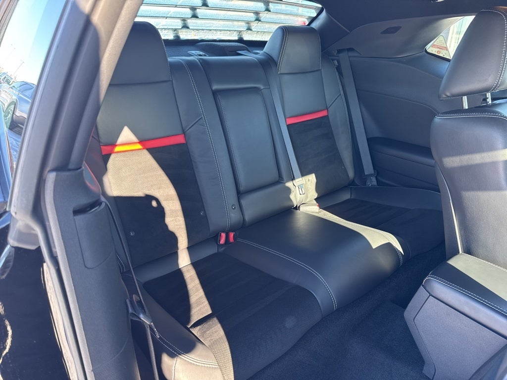 Quick Order Package 21X, 20 x 9 Aluminum Wheels, 4-Wheel Disc Brakes, 6 Speakers, 6.5 Touchscreen Display, ABS brakes, Adaptive suspension, Air Conditioning, Alloy wheels, AM/FM radio, Anti-whiplash front head restraints, Audio Jack Input for Mobile Devices, Auto-dimming Rear-View mirror, Automatic temperature control, Brake assist, Bumpers: body-color, CD player, Compass, Delay-off headlights, Driver door bin, Driver vanity mirror, Dual front impact airbags, Dual front side impact airbags, Dual Silver Center Stripes, DVD-Audio, Electronic Stability Control, Four wheel independent suspension, Front anti-roll bar, Front Bucket Seats, Front Center Armrest, Front fog lights, Front reading lights, Fully automatic headlights, Garage door transmitter: HomeLink, Heated door mirrors, Heated front seats, Heated steering wheel, High-Intensity Discharge Headlights, Illuminated entry, Leather Shift Knob, Low tire pressure warning, Outside temperature display, Overhead airbag, Overhead console, Panic alarm, Passenger door bin, Passenger vanity mirror, Power door mirrors, Power driver seat, Power steering, Power windows, Premium Leather Trimmed Bucket Seats, Radio data system, Radio: Uconnect 430 CD/DVD/MP3/HDD, Rear anti-roll bar, Rear seat center armrest, Rear window defroster, Remote keyless entry, Security system, SIRIUS Satellite Radio, Speed control, Speed-sensing steering, Split folding rear seat, Spoiler, Steering wheel mounted audio controls, Tachometer, Telescoping steering wheel, Tilt steering wheel, Traction control, Trip computer, Variably intermittent wipers, Wheels: 20 x 9.0 Black Vapor Chrome Alum (DISC), Quick Order Package 21X. RWD 14/23 City/Highway MPG SRT HEMI 6.4L V8 Dodge Recent Arrival! 2014 Dodge Challenger SRT8 Challenger Tremec 6-Speed Manual 2014 2D Coupe Black Clearcoat