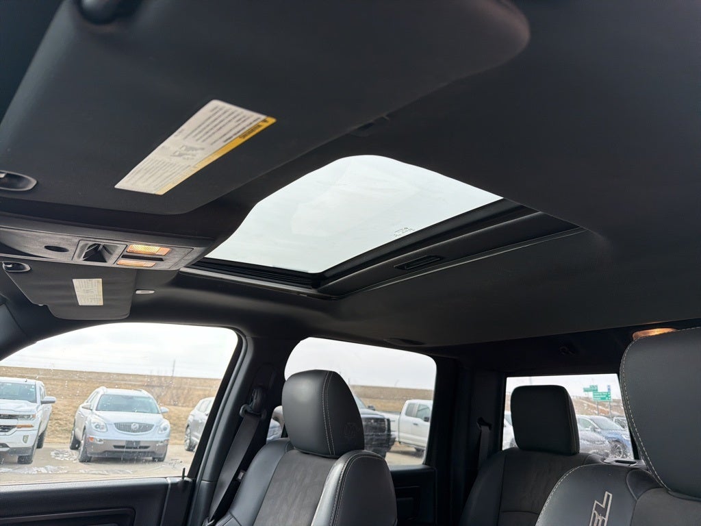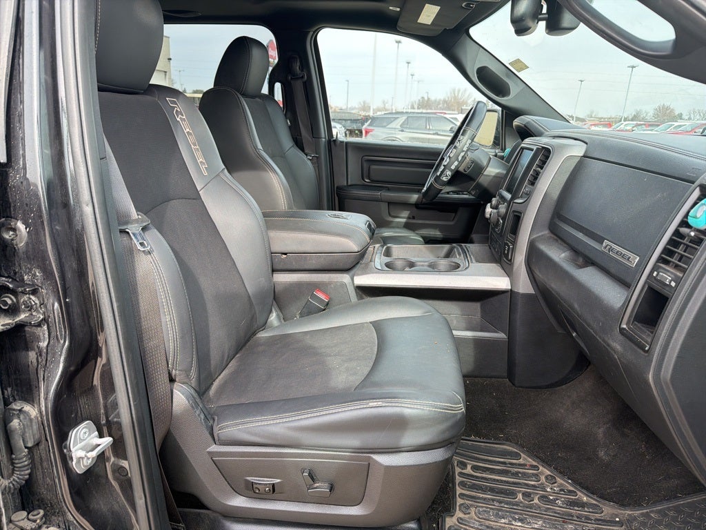 Auto-Dimming Exterior Mirrors, Auto-Dimming Rear-View Mirror, Black Powder-Coated Front Bumper, Dual Rear Exhaust w/Bright Tips, Exterior Mirrors Courtesy Lamps, Exterior Mirrors w/Supplemental Signals, Flat Black 5.7L Hemi Badge, Flat Black Ram 1500 Badge, Glove Box Lamp, LED Bed Lighting, Luxury Group, Overhead Console w/Garage Door Opener, Power Heated Fold-Away Mirrors, Power-Folding Mirrors, Quick Order Package 26W Rebel, RAM 1500 Black Rebel Group, Ram Glove Box Badge, Rear Dome w/On/Off Switch Lamp, Sun Visors w/Illuminated Vanity Mirrors, Underhood Lamp, Universal Garage Door Opener, Wheels: 17 x 8 Matte Black Aluminum, 1 Yr. Trial (Registration Required), 3.92 Rear Axle Ratio, 4-Wheel Disc Brakes, 5-Year SiriusXM Traffic Service, 5-Year SiriusXM Travel Link Service, 6 Speakers, 8.4 Touchscreen Display, 9 Alpine Speakers w/Subwoofer, ABS brakes, Air Conditioning, Alloy wheels, AM/FM radio, Audio Jack Input for Mobile Devices, Auto-leveling suspension, Automatic temperature control, Black Tubular Side Steps, Brake assist, Bright Rotary Shifter, Compass, Delay-off headlights, Driver door bin, Dual front impact airbags, Dual front side impact airbags, Electronic Shift, Electronic Stability Control, Emergency communication system: Uconnect Access, Front anti-roll bar, Front Bucket Seats, Front Center Armrest w/Storage, Front dual zone A/C, Front fog lights, Front reading lights, Front wheel independent suspension, Fully automatic headlights, GPS Antenna Input, GPS Navigation, HD Radio, Heated door mirrors, Heated front seats, Heated steering wheel, Illuminated entry, Integrated Voice Command w/Bluetooth®, Keyless Enter-N-Go, Leather steering wheel, Low tire pressure warning, Media Hub (USB, AUX), Occupant sensing airbag, Outside temperature display, Overhead airbag, Overhead console, Panic alarm, ParkView Rear Back-Up Camera, Passenger door bin, Passenger vanity mirror, Power door mirrors, Power driver seat, Power passenger seat, Power steering, Power Sunroof, Power windows, Premium Cloth Seats w/Emboss Tread Pattern, Radio data system, Radio: Uconnect 3C Nav w/8.4 Display, Radio: Uconnect 3C w/8.4 Display, Rear anti-roll bar, Rear seat center armrest, Rear step bumper, Remote keyless entry, Remote Proximity Keyless Entry, Remote USB Port, Security system, SIRIUSXM Satellite Radio, SIRIUSXM Traffic, SiriusXM Travel Link, Speed control, Split folding rear seat, Spray In Bedliner, Steering wheel mounted audio controls, Tachometer, Tilt steering wheel, Tip Start, Tonneau Cover w/Embossed Ram's Head, Traction control, Trip computer, Uconnect Access, Uconnect Access 1 Year Trial, Variably intermittent wipers, Voltmeter, Wheels: 17 x 8 Aluminum w/Matte Black Pocket, Auto-Dimming Exterior Mirrors, Auto-Dimming Rear-View Mirror, Black Powder-Coated Front Bumper, Dual Rear Exhaust w/Bright Tips, Exterior Mirrors Courtesy Lamps, Exterior Mirrors w/Supplemental Signals, Flat Black 5.7L Hemi Badge, Flat Black Ram 1500 Badge, Glove Box Lamp, LED Bed Lighting, Luxury Group, Overhead Console w/Garage Door Opener, Power Heated Fold-Away Mirrors, Power-Folding Mirrors, Quick Order Package 26W Rebel, RAM 1500 Black Rebel Group, Ram Glove Box Badge, Rear Dome w/On/Off Switch Lamp, Sun Visors w/Illuminated Vanity Mirrors, Underhood Lamp, Universal Garage Door Opener, Wheels: 17 x 8 Matte Black Aluminum. Clean CARFAX. 4WD 15/21 City/Highway MPG HEMI 5.7L V8 Multi Displacement VVT Ram Recent Arrival! 2017 Ram 1500 Rebel 1500 8-Speed Automatic 2017 4D Crew Cab Brilliant Black Crystal Pearlcoat