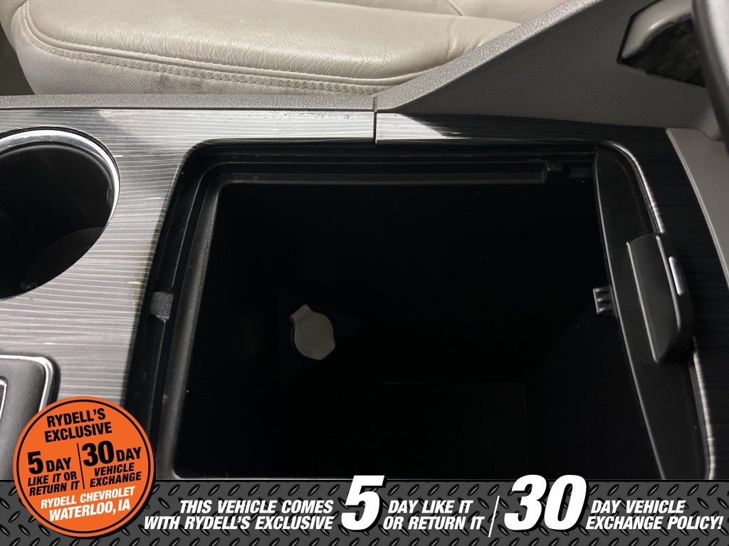 - Console, front center with 2 cup holders, covered storage bin and sliding armrest with storage