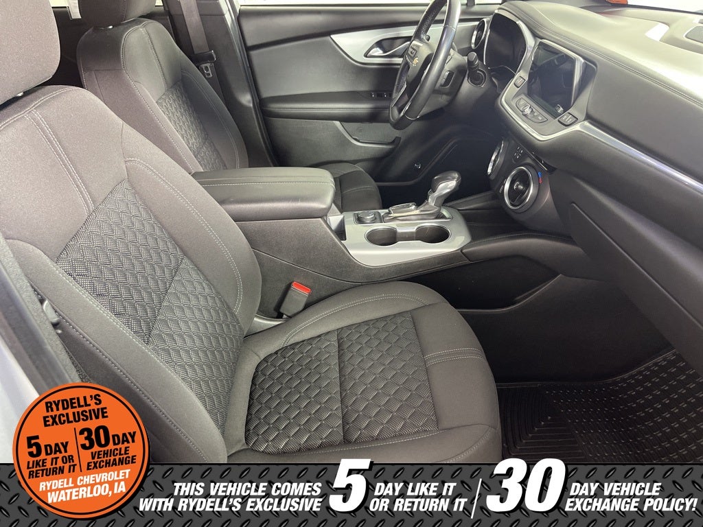 Clean CARFAX. CARFAX One-Owner. 21/27 City/Highway MPG AWD, 170 Amp Alternator, 3.47 Final Drive Axle Ratio, 4-Wheel Disc Brakes, 6 Speakers, 6-Speaker Audio System Feature, ABS brakes, Air Conditioning, Alloy wheels, AM/FM radio: SiriusXM, Apple CarPlay/Android Auto, Automatic temperature control, Black Roof Rails, Brake assist, Bumpers: body-color, Child-Seat-Sensing Airbag, Compass, Convenience & Driver Confidence Package, Delay-off headlights, Driver door bin, Driver vanity mirror, Dual front impact airbags, Dual front side impact airbags, Electronic Stability Control, Emergency communication system: OnStar and Chevrolet connected services capable, Exterior Parking Camera Rear, Four wheel independent suspension, Front anti-roll bar, Front Bucket Seats, Front Center Armrest, Front dual zone A/C, Front reading lights, Fully automatic headlights, Heated door mirrors, Heated Driver & Front Passenger Seats, High-Intensity Discharge Headlights, Illuminated entry, Inside Rear-View Auto-Dimming Mirror, Knee airbag, Lane Change Alert w/Side Blind Zone Alert, Leather Shift Knob, Low tire pressure warning, Occupant sensing airbag, Outside Heated Power-Adjustable Body-Color Mirrors, Outside temperature display, Overhead airbag, Overhead console, Panic alarm, Passenger door bin, Passenger vanity mirror, Power door mirrors, Power driver seat, Power steering, Power windows, Preferred Equipment Group 2LT, Premium Cloth Seat Trim, Radio data system, Radio: Chevrolet Infotainment 3 System, Rear anti-roll bar, Rear Cross Traffic Alert, Rear Park Assist w/Audible Warning, Rear Power Programmable Liftgate, Rear reading lights, Rear seat center armrest, Rear window defroster, Rear window wiper, Remote keyless entry, Remote Start, Ride & Handling Suspension, Security system, SiriusXM Radio, Speed control, Speed-sensing steering, Split folding rear seat, Spoiler, Steering wheel mounted audio controls, Tachometer, Telescoping steering wheel, Tilt steering wheel, Traction control, Trip computer, Universal Home Remote, Variably intermittent wipers, Voltmeter, Wheels: 18 Bright Silver Aluminum, AWD. Silver Ice Metallic 2020 Chevrolet Blazer LT AWD 9-Speed Automatic 2.0L Turbocharged