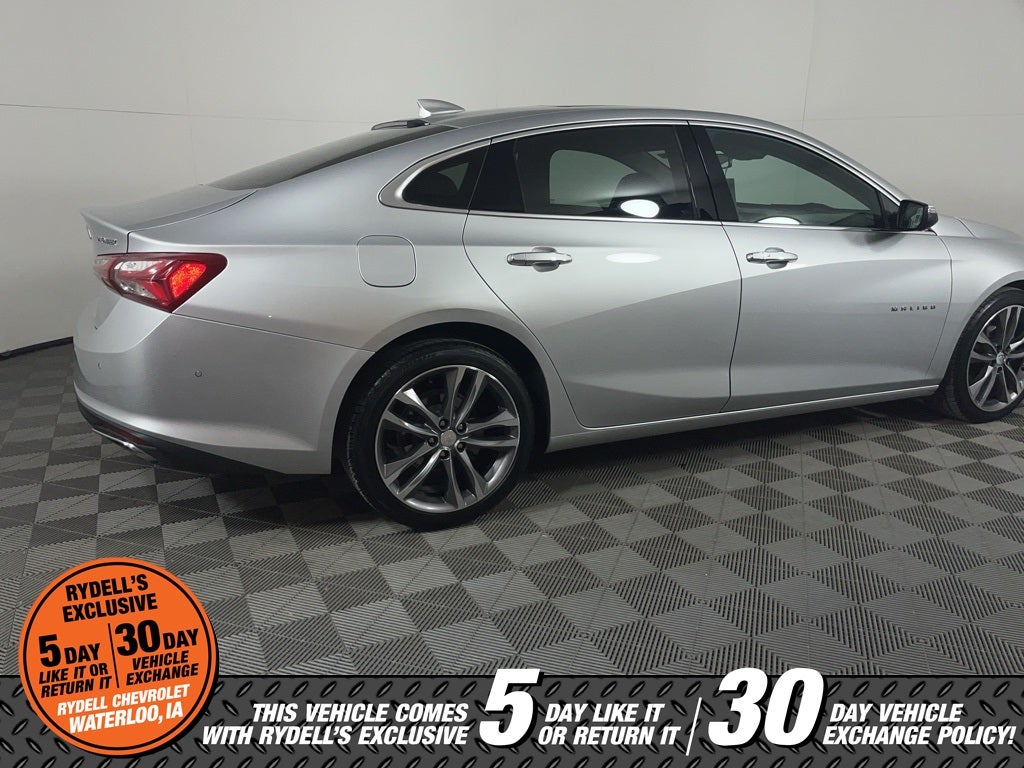 Clean CARFAX. 22/32 City/Highway MPG Apple CarPlay, Android Auto, Jet Black w/Perforated Leather-Appointed Seat Trim, 19 Aluminum Wheels, 4-Wheel Disc Brakes, 6-Way Power Front Passenger Seat Adjuster, 8-Way Power Driver Seat Adjuster, 9 Speakers, ABS brakes, Air Conditioning, Alloy wheels, AM/FM radio: SiriusXM, Apple CarPlay/Android Auto, Auto-dimming Rear-View mirror, Automatic temperature control, Bose Premium 9-Speaker System, Brake assist, Bumpers: body-color, Compass, Delay-off headlights, Driver door bin, Driver Memory, Driver vanity mirror, Dual front impact airbags, Dual front side impact airbags, Electronic Stability Control, Emergency communication system: OnStar and Chevrolet connected services capable, Exterior Parking Camera Rear, Four wheel independent suspension, Front anti-roll bar, Front Bucket Seats, Front Center Armrest, Front dual zone A/C, Front Passenger Power Lumbar Seat Adjuster, Front reading lights, Fully automatic headlights, Heated door mirrors, Heated Driver & Front Passenger Seats, Heated front seats, Heated rear seats, Heated steering wheel, Illuminated entry, Knee airbag, Leather Shift Knob, Low tire pressure warning, Memory seat, Navigation System, Occupant sensing airbag, Outside temperature display, Overhead airbag, Overhead console, Panic alarm, Passenger door bin, Passenger vanity mirror, Perforated Leather-Appointed Seat Trim, Power door mirrors, Power Driver Lumbar Control Seat Adjuster, Power driver seat, Power moonroof, Power passenger seat, Power steering, Power windows, Premium audio system: Chevrolet Infotainment 3 Plus, Radio data system, Radio: Chevrolet Infotainment 3 Plus System w/Navi, Rear anti-roll bar, Rear reading lights, Rear seat center armrest, Rear side impact airbag, Rear window defroster, Remote keyless entry, Security system, SiriusXM Radio, Speed control, Split folding rear seat, Steering wheel mounted audio controls, Tachometer, Telescoping steering wheel, Tilt steering wheel, Traction control, Trip computer, Turn signal indicator mirrors, USB Charging-Only Port, Variably intermittent wipers, Ventilated Driver & Front Passenger Seats, Ventilated front seats, Voltmeter, Jet Black w/Perforated Leather-Appointed Seat Trim. Silver Ice Metallic 2020 Chevrolet Malibu Premier FWD 9-Speed Automatic 2.0L 4-Cylinder DGI DOHC VVT Turbocharged