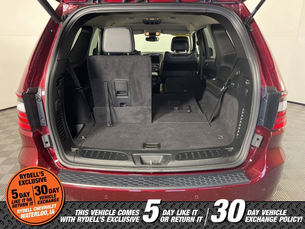 Clean CARFAX. CARFAX One-Owner. One Owner, AWD, AWD, 115V Auxiliary Power Outlet, 180 Amp Alternator, Auto-Dimming Exterior Driver Mirror, Bright Cargo Area Scuff Pads, Bright Front Door Sill Scuff Pads, Dual Remote USB Port - Charge Only, Exterior Mirrors w/Memory, Exterior Mirrors w/Supplemental Signals, Heated Front Seats, Heated Second Row Seats, Heated Steering Wheel, Leather Suede Bucket Seats, Power 6x9 Multi-Function Foldaway Mirrors, Power 8-Way Driver Memory 6-Way Passenger Seats, Power Driver/Passenger 4-Way Lumbar Adjust, Power Liftgate, Quick Order Package 2BE GT Plus, Radio/Driver Seat/Mirrors Memory, Remote Start System, Security Alarm, Sun Visors w/Illuminated Vanity Mirrors, 1-Year SiriusXM Guardian Trial, 2nd Row Fold/Tumble Captain Chairs, 2nd Row Mini Console w/Cupholders, 2nd Row Seat Mounted Inboard Armrests, 3.45 Rear Axle Ratio, 3rd Row Floor Mat & Mini Console, 3rd row seats: split-bench, 4-Wheel Disc Brakes, 4G LTE Wi-Fi Hot Spot, 5-Year SiriusXM Traffic Service, 5-Year SiriusXM Travel Link Service, 6 Speakers, 6-Passenger Seating, 8.4 Touchscreen Display, ABS brakes, Air Conditioning, Alloy wheels, AM/FM radio: SiriusXM, Anti-whiplash front head restraints, Apple CarPlay, Apple CarPlay/Android Auto, Auto-dimming Rear-View mirror, Automatic temperature control, Blind Spot & Cross Path Detection, Brake assist, Bumpers: body-color, Cloth Low-Back Bucket Seats, Compass, Delay-off headlights, Driver door bin, Driver vanity mirror, Dual front impact airbags, Dual front side impact airbags, Electronic Stability Control, Emergency communication system: Roadside Assistance/9-1-1 Call, For Details Visit DriveUconnect.com, Four wheel independent suspension, Front anti-roll bar, Front Bucket Seats, Front Center Armrest w/Storage, Front dual zone A/C, Front fog lights, Front License Plate Bracket, Front reading lights, Fully automatic headlights, Google Android Auto, GPS Antenna Input, GPS Navigation, HD Radio, Heated door mirrors, Illuminated entry, Integrated Center Stack Radio, Integrated Voice Command w/Bluetooth®, Knee airbag, Leather steering wheel, Low tire pressure warning, Occupant sensing airbag, Outside temperature display, Overhead airbag, Overhead console, Panic alarm, ParkView Rear Back-Up Camera, Passenger door bin, Passenger vanity mirror, Power door mirrors, Power driver seat, Power steering, Power windows, Radio: Uconnect 4 w/7 Display, Radio: Uconnect 4C Nav w/8.4 Display, Rear air conditioning, Rear anti-roll bar, Rear reading lights, Rear seat center armrest, Rear window defroster, Rear window wiper, Remote keyless entry, SiriusXM Satellite Radio, SiriusXM Traffic Plus, SiriusXM Travel Link, Speed control, Speed-Sensitive Wipers, Split folding rear seat, Spoiler, Steering wheel mounted audio controls, Tachometer, Telescoping steering wheel, Tilt steering wheel, Traction control, Trip computer, USB Host Flip, Variably intermittent wipers, Wheels: 20 x 8.0 Satin Carbon - Design 1, AWD, 115V Auxiliary Power Outlet, 180 Amp Alternator, Auto-Dimming Exterior Driver Mirror, Bright Cargo Area Scuff Pads, Bright Front Door Sill Scuff Pads, Dual Remote USB Port - Charge Only, Exterior Mirrors w/Memory, Exterior Mirrors w/Supplemental Signals, Heated Front Seats, Heated Second Row Seats, Heated Steering Wheel, Leather Suede Bucket Seats, Power 6x9 Multi-Function Foldaway Mirrors, Power 8-Way Driver Memory 6-Way Passenger Seats, Power Driver/Passenger 4-Way Lumbar Adjust, Power Liftgate, Quick Order Package 2BE GT Plus, Radio/Driver Seat/Mirrors Memory, Remote Start System, Security Alarm, Sun Visors w/Illuminated Vanity Mirrors. Octane Red Pearlcoat 2020 Dodge Durango GT Plus AWD 8-Speed Automatic 3.6L V6 24V VVT