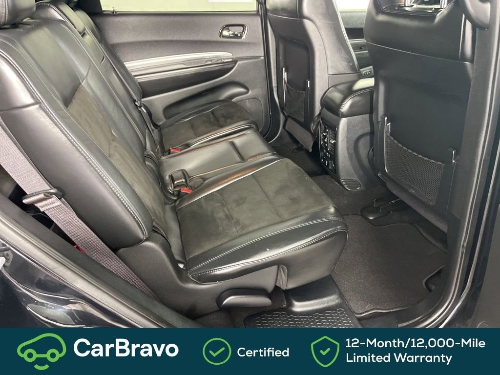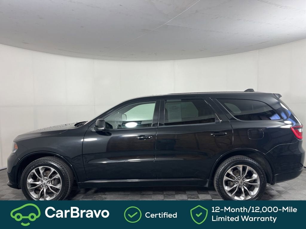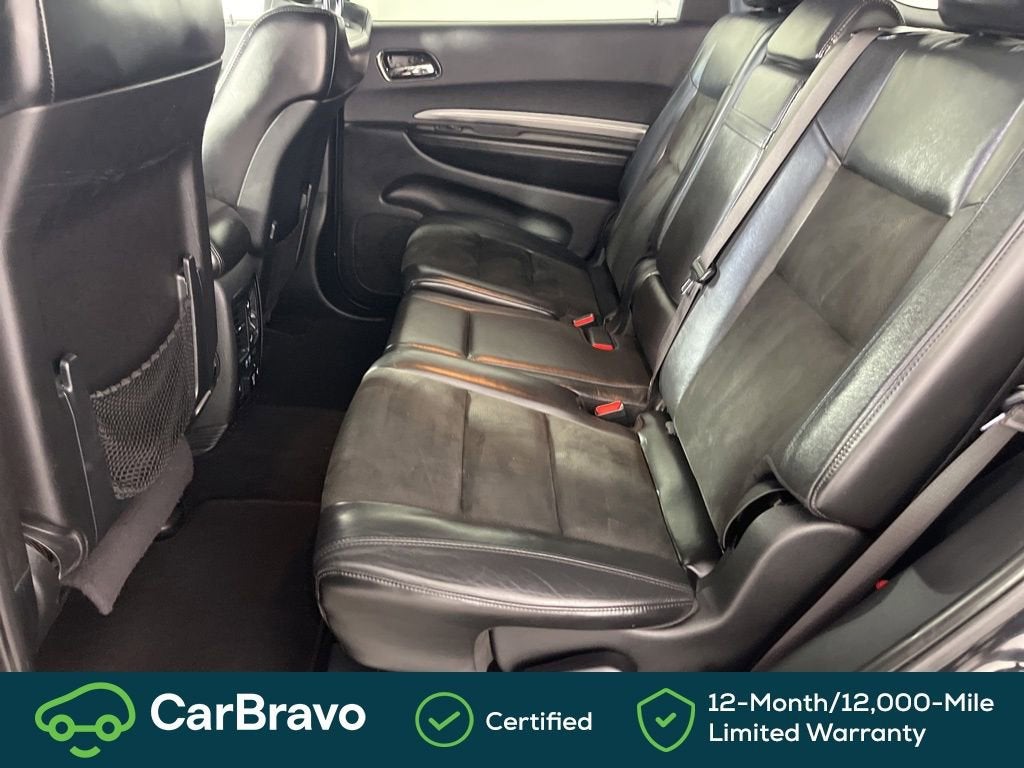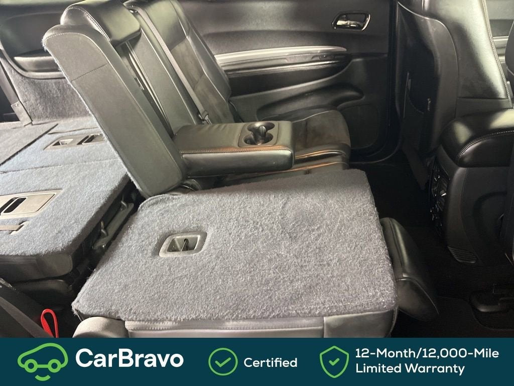Certified. Yes Certified, AWD, 115V Auxiliary Power Outlet, 180 Amp Alternator, 3.45 Rear Axle Ratio, 3rd row seats: split-bench, 4-Wheel Disc Brakes, 6 Speakers, ABS brakes, Air Conditioning, Alloy wheels, AM/FM radio: SiriusXM, Anti-whiplash front head restraints, Apple CarPlay, Apple CarPlay/Android Auto, Auto-Dimming Exterior Driver Mirror, Auto-dimming Rear-View mirror, Automatic temperature control, Brake assist, Bright Cargo Area Scuff Pads, Bright Front Door Sill Scuff Pads, Bumpers: body-color, Cloth Low-Back Bucket Seats, Compass, Delay-off headlights, Driver door bin, Driver vanity mirror, Dual front impact airbags, Dual front side impact airbags, Dual Remote USB Port - Charge Only, Electronic Stability Control, Emergency communication system: Roadside Assistance/9-1-1 Call, Exterior Mirrors w/Memory, Exterior Mirrors w/Supplemental Signals, Four wheel independent suspension, Front anti-roll bar, Front Bucket Seats, Front Center Armrest w/Storage, Front dual zone A/C, Front fog lights, Front License Plate Bracket, Front reading lights, Fully automatic headlights, Google Android Auto, GPS Antenna Input, Heated door mirrors, Heated Front Seats, Heated Second Row Seats, Heated Steering Wheel, Illuminated entry, Integrated Center Stack Radio, Integrated Voice Command w/Bluetooth®, Knee airbag, Leather steering wheel, Leather Suede Bucket Seats, Low tire pressure warning, Manufacturer's Statement of Origin, Occupant sensing airbag, Outside temperature display, Overhead airbag, Overhead console, Panic alarm, ParkView Rear Back-Up Camera, Passenger door bin, Passenger vanity mirror, Power 6x9 Multi-Function Foldaway Mirrors, Power 8-Way Driver Memory 6-Way Passenger Seats, Power door mirrors, Power driver seat, Power Driver/Passenger 4-Way Lumbar Adjust, Power Liftgate, Power steering, Power windows, Quick Order Package 2BE GT Plus, Radio: Uconnect 4 w/7 Display, Radio/Driver Seat/Mirrors Memory, Rear air conditioning, Rear anti-roll bar, Rear reading lights, Rear seat center armrest, Rear window defroster, Rear window wiper, Remote keyless entry, Remote Start System, Security Alarm, SiriusXM Satellite Radio, Speed control, Speed-Sensitive Wipers, Split folding rear seat, Spoiler, Steering wheel mounted audio controls, Sun Visors w/Illuminated Vanity Mirrors, Tachometer, Telescoping steering wheel, Tilt steering wheel, Traction control, Trip computer, USB Host Flip, Variably intermittent wipers, Wheels: 20 x 8.0 Satin Carbon - Design 1, AWD. DB Black Crystal Clearcoat 2020 Dodge Durango GT Plus AWD 8-Speed Automatic 3.6L V6 24V VVT