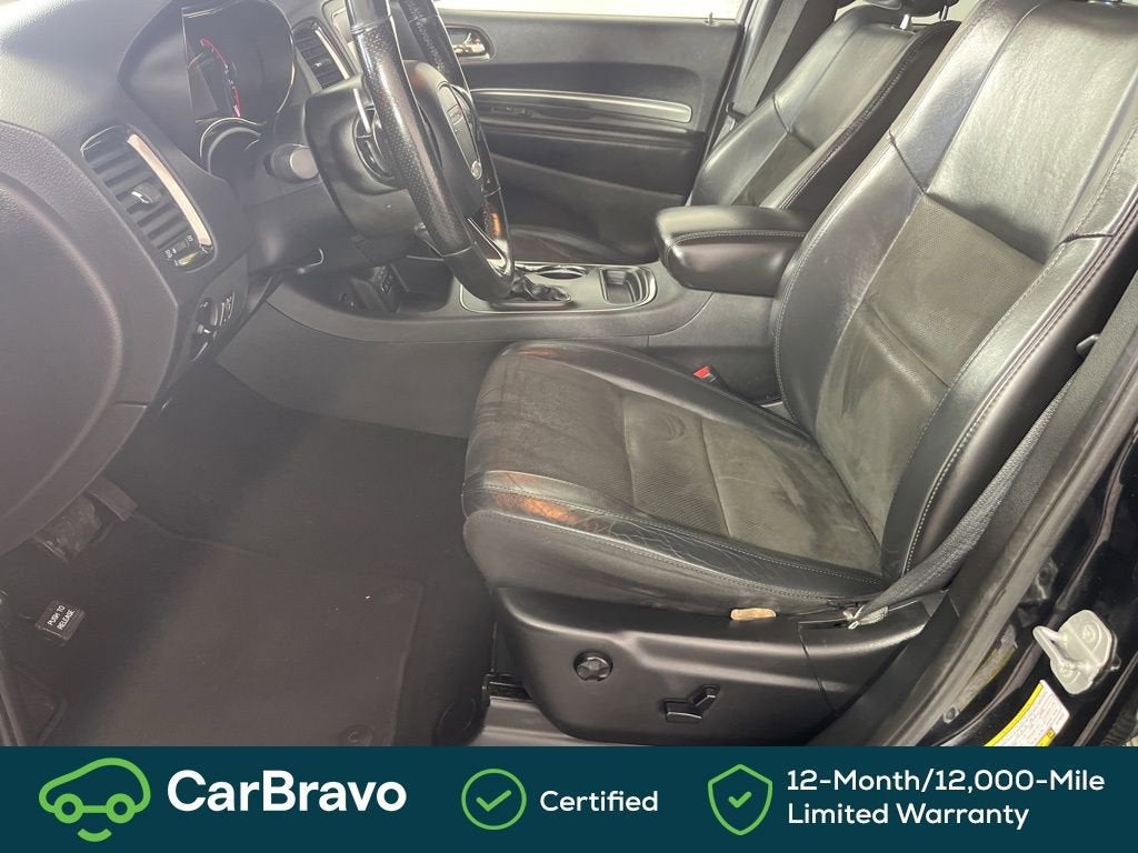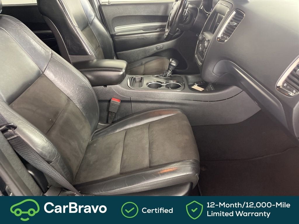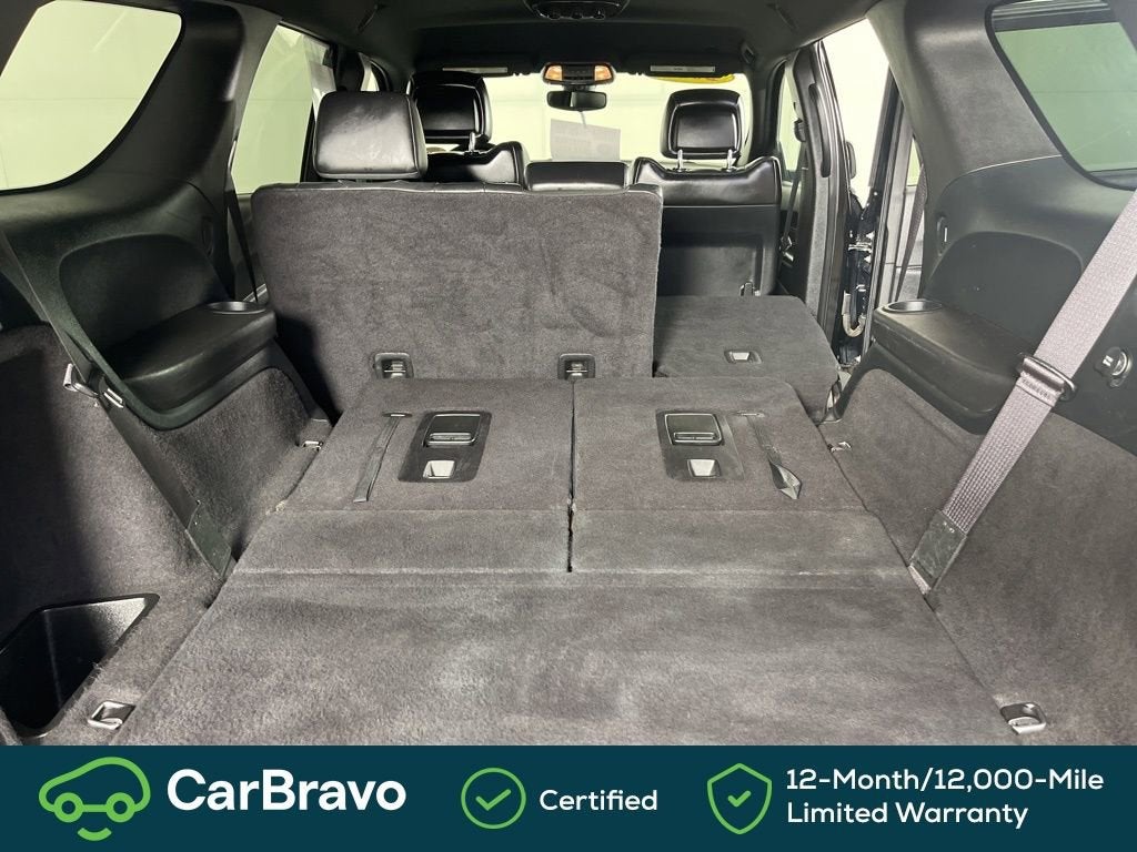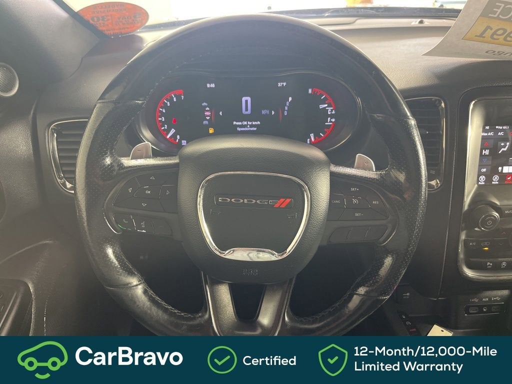 Certified. Yes Certified, AWD, 115V Auxiliary Power Outlet, 180 Amp Alternator, 3.45 Rear Axle Ratio, 3rd row seats: split-bench, 4-Wheel Disc Brakes, 6 Speakers, ABS brakes, Air Conditioning, Alloy wheels, AM/FM radio: SiriusXM, Anti-whiplash front head restraints, Apple CarPlay, Apple CarPlay/Android Auto, Auto-Dimming Exterior Driver Mirror, Auto-dimming Rear-View mirror, Automatic temperature control, Brake assist, Bright Cargo Area Scuff Pads, Bright Front Door Sill Scuff Pads, Bumpers: body-color, Cloth Low-Back Bucket Seats, Compass, Delay-off headlights, Driver door bin, Driver vanity mirror, Dual front impact airbags, Dual front side impact airbags, Dual Remote USB Port - Charge Only, Electronic Stability Control, Emergency communication system: Roadside Assistance/9-1-1 Call, Exterior Mirrors w/Memory, Exterior Mirrors w/Supplemental Signals, Four wheel independent suspension, Front anti-roll bar, Front Bucket Seats, Front Center Armrest w/Storage, Front dual zone A/C, Front fog lights, Front License Plate Bracket, Front reading lights, Fully automatic headlights, Google Android Auto, GPS Antenna Input, Heated door mirrors, Heated Front Seats, Heated Second Row Seats, Heated Steering Wheel, Illuminated entry, Integrated Center Stack Radio, Integrated Voice Command w/Bluetooth®, Knee airbag, Leather steering wheel, Leather Suede Bucket Seats, Low tire pressure warning, Manufacturer's Statement of Origin, Occupant sensing airbag, Outside temperature display, Overhead airbag, Overhead console, Panic alarm, ParkView Rear Back-Up Camera, Passenger door bin, Passenger vanity mirror, Power 6x9 Multi-Function Foldaway Mirrors, Power 8-Way Driver Memory 6-Way Passenger Seats, Power door mirrors, Power driver seat, Power Driver/Passenger 4-Way Lumbar Adjust, Power Liftgate, Power steering, Power windows, Quick Order Package 2BE GT Plus, Radio: Uconnect 4 w/7 Display, Radio/Driver Seat/Mirrors Memory, Rear air conditioning, Rear anti-roll bar, Rear reading lights, Rear seat center armrest, Rear window defroster, Rear window wiper, Remote keyless entry, Remote Start System, Security Alarm, SiriusXM Satellite Radio, Speed control, Speed-Sensitive Wipers, Split folding rear seat, Spoiler, Steering wheel mounted audio controls, Sun Visors w/Illuminated Vanity Mirrors, Tachometer, Telescoping steering wheel, Tilt steering wheel, Traction control, Trip computer, USB Host Flip, Variably intermittent wipers, Wheels: 20 x 8.0 Satin Carbon - Design 1, AWD. DB Black Crystal Clearcoat 2020 Dodge Durango GT Plus AWD 8-Speed Automatic 3.6L V6 24V VVT