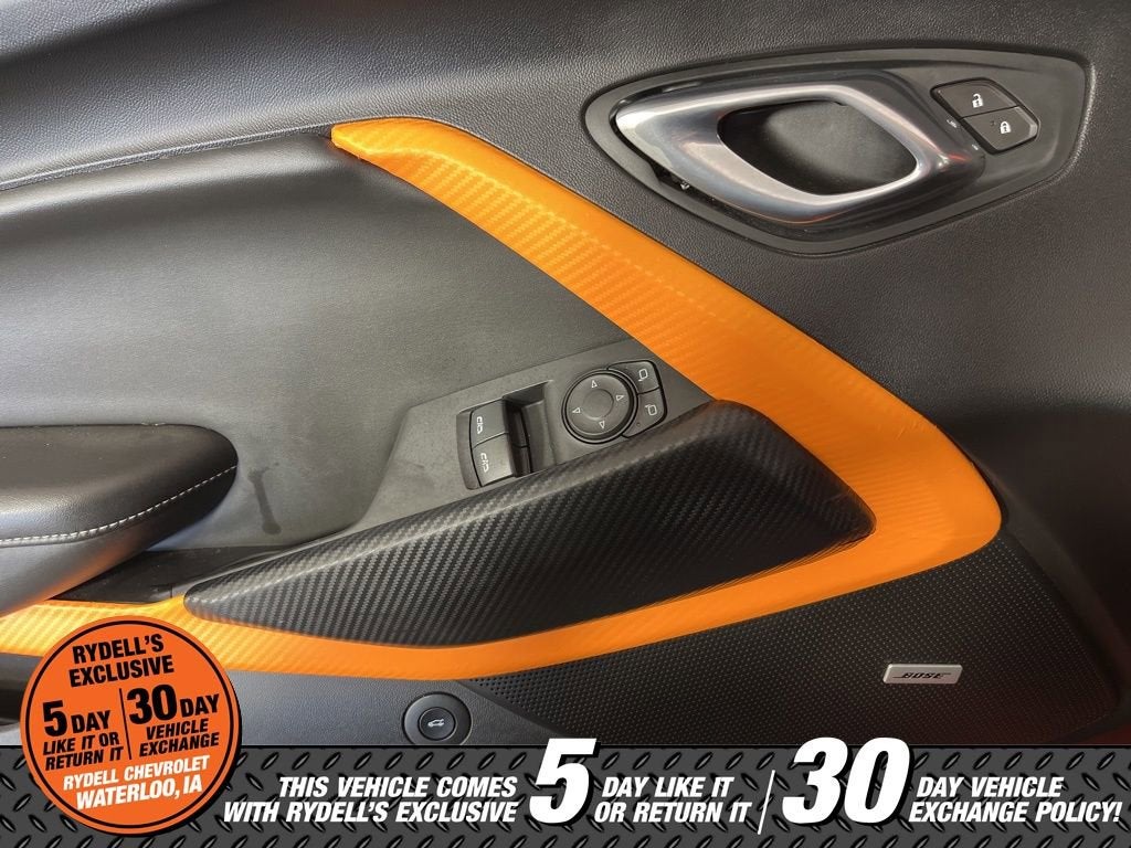 16/26 City/Highway MPG 6-Speaker Audio System Feature, Bluetooth® For Phone, Bose Premium 9-Speaker Audio System Feature, Radio: Chevrolet Infotainment 3 Plus System, SiriusXM w/360L, Technology Package, 2.77 Rear Axle Ratio, 4-Wheel Disc Brakes, 6 Speakers, 6-Way Power Front Passenger Seat Adjuster, 8-Way Power Driver Seat Adjuster, ABS brakes, Air Conditioning, Alloy wheels, AM/FM radio: SiriusXM, Apple CarPlay/Android Auto, Automatic temperature control, Black Lug Nuts (LPO), Black Wheel Locks (LPO), Black Wheel Lug Nuts & Locks Package (LPO), Brake assist, Bumpers: body-color, Carbon Fiber-Look Auto Shift Knob (LPO), Cloth Seat Trim, Compass, Dark Tint LED Tail Lamps, Decklid-Mounted Lip Spoiler, Delay-off headlights, Driver door bin, Driver vanity mirror, Dual front impact airbags, Dual front side impact airbags, Dual Mode Exhaust, Electronic Stability Control, Exterior Parking Camera Rear, Four wheel independent suspension, Front anti-roll bar, Front Bucket Seats, Front Center Armrest, Front reading lights, Front Sport Bucket Seats, Fully automatic headlights, Illuminated entry, Knee airbag, Leather Shift Knob, Low tire pressure warning, Occupant sensing airbag, Orange-Painted Calipers, Overhead airbag, Paddle-Shift Manual Controls, Panic alarm, Passenger door bin, Passenger vanity mirror, Power door mirrors, Power driver seat, Power passenger seat, Power steering, Power windows, Preferred Equipment Group LT1, Premium audio system: Chevrolet Infotainment System, Radio data system, Radio: Chevrolet Infotainment 3 System, Rear anti-roll bar, Rear window defroster, Remote keyless entry, Remote Vehicle Starter System, RS Package, Satin Black Appearance Package, Security system, SiriusXM Radio, Speed control, Speed-sensing steering, Steering wheel mounted audio controls, Tachometer, Telescoping steering wheel, Tilt steering wheel, Traction control, Trip computer, Variably intermittent wipers, Voltmeter, Wheels: 20 5-Spoke Carbon Flash Painted Alum, Wheels: 20 Silver-Painted Aluminum, 6-Speaker Audio System Feature, Bluetooth® For Phone, Bose Premium 9-Speaker Audio System Feature, Radio: Chevrolet Infotainment 3 Plus System, SiriusXM w/360L, Technology Package. Crush 2021 Chevrolet Camaro LT1 RWD 10-Speed Automatic 6.2L V8