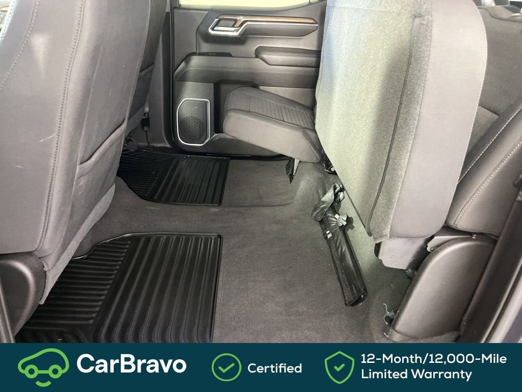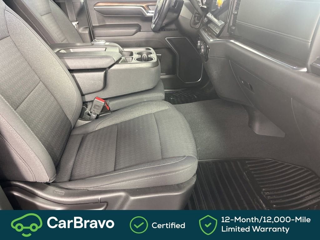 Clean CARFAX. CARFAX One-Owner. Certified. Yes Certified, 8-Speed Automatic, 4WD, Black Cloth, 10-Way Power Driver Seat w/Lumbar, 12.3 Multicolor Reconfigurable Digital Display, 120-Volt Bed Mounted Power Outlet, 120-Volt Instrument Panel Power Outlet, 3.42 Rear Axle Ratio, 4-Wheel Disc Brakes, 40/20/40 Front Split-Bench Seat, 6 Speakers, 6-Speaker Audio System, ABS brakes, Air Conditioning, All-Star Edition, Alloy wheels, AM/FM radio: SiriusXM with 360L, Apple CarPlay/Android Auto, Auto High-beam Headlights, Auto-Locking Rear Differential, Automatic Emergency Braking, Automatic temperature control, Bluetooth® For Phone, Brake assist, Bumpers: chrome, Chevrolet Connected Access Capable, Chrome Mirror Caps, Cloth Seat Trim, Color-Keyed Carpeting Floor Covering, Compass, Convenience Package, Deep-Tinted Glass, Delay-off headlights, Driver door bin, Driver vanity mirror, Dual front impact airbags, Dual front side impact airbags, Dual Rear USB Ports (Charge Only), Dual-Zone Automatic Climate Control, Electric Rear-Window Defogger, Electrical Steering Column Lock, Electronic Cruise Control, Electronic Stability Control, Following Distance Indicator, Forward Collision Alert, Front anti-roll bar, Front Center Armrest w/Storage, Front dual zone A/C, Front Frame-Mounted Black Recovery Hooks, Front Pedestrian Braking, Front reading lights, Front wheel independent suspension, Fully automatic headlights, HD Rear Vision Camera, Heated door mirrors, Heated Driver & Front Outboard Passenger Seats, Heated front seats, Heated Steering Wheel, Heated steering wheel, High Capacity Suspension Package, Hitch Guidance, Illuminated entry, IntelliBeam Automatic High Beam On/Off, Keyless Open & Start, Lane Keep Assist w/Lane Departure Warning, Leather Wrapped Steering Wheel, LED Cargo Area Lighting, Low tire pressure warning, Manual Tilt/Telescoping Steering Column, Not Equipped w/Steering Column Lock, Occupant sensing airbag, OnStar & Chevrolet Connected Services Capable, Outside temperature display, Overhead airbag, Overhead console, Panic alarm, Passenger door bin, Passenger vanity mirror, Power door mirrors, Power driver seat, Power Front Windows w/Driver Express Up/Down, Power Front Windows w/Passenger Express Down, Power Rear Windows w/Express Down, Power steering, Power windows, Premium audio system: Chevrolet Infotainment 3 Premium, Radio data system, Radio: Chevrolet Infotainment 3 Premium System, Rear 60/40 Folding Bench Seat (Folds Up), Rear reading lights, Rear step bumper, Rear window defroster, Remote keyless entry, Remote Vehicle Starter System, Security system, SiriusXM w/360L, Speed control, Speed-sensing steering, Split folding rear seat, Standard Suspension Package, Steering Wheel Audio Controls, Steering wheel mounted audio controls, Tachometer, Telescoping steering wheel, Theft Deterrent System (Unauthorized Entry), Tilt steering wheel, Traction control, Trailering Package, Trip computer, Variably intermittent wipers, Voltmeter, Wheels: 18 x 8.5 Bright Silver Painted Aluminum, Wheels: 20 x 9 Painted Aluminum, Wi-Fi Hot Spot Capable, Wireless Phone Projection, 8-Speed Automatic, 4WD, Black Cloth. Dark Ash Metallic 2022 Chevrolet Silverado 1500 LT 4WD 8-Speed Automatic 2.7L Turbo