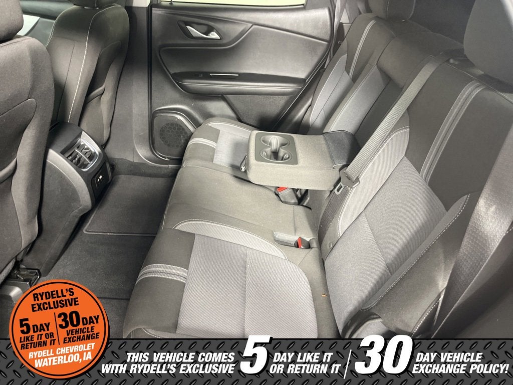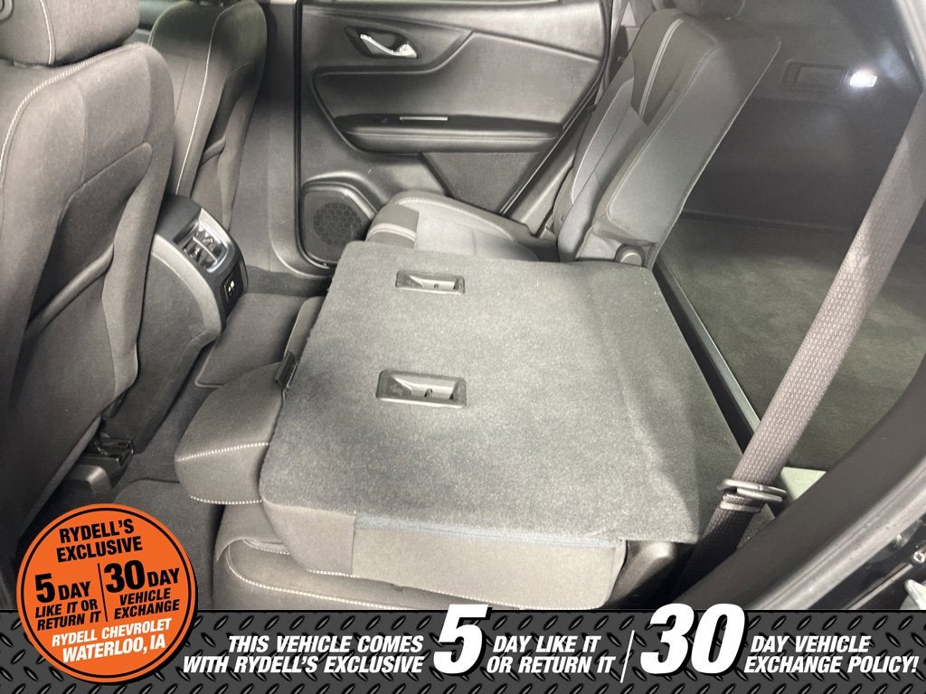 Clean CARFAX. 22/29 City/Highway MPG Apple CarPlay, Android Auto, 170 Amp Alternator, 3.47 Final Drive Axle Ratio, 4-Way Manual Front Passenger Seat Adjuster, 4-Wheel Disc Brakes, 6 Speakers, 6-Speaker Audio System Feature, 8-Way Power Driver Seat Adjuster, ABS brakes, Air Conditioning, Alloy wheels, AM/FM radio: SiriusXM with 360L, Apple CarPlay/Android Auto, Auto High-beam Headlights, Automatic temperature control, Black Roof-Mounted Side Rails, Brake assist, Bumpers: body-color, Child-Seat-Sensing Airbag, Compass, Delay-off headlights, Driver Confidence Package, Driver door bin, Driver vanity mirror, Dual front impact airbags, Dual front side impact airbags, Electronic Stability Control, Emergency communication system: OnStar and Chevrolet connected services capable, Four wheel independent suspension, Front & Rear Black Bowties, Front anti-roll bar, Front Bucket Seats, Front Center Armrest, Front dual zone A/C, Front reading lights, Fully automatic headlights, Heated door mirrors, Illuminated entry, Knee airbag, Lane Change Alert w/Side Blind Zone Alert, Leather Shift Knob, Low tire pressure warning, Midnight/Sport Edition, Not Equipped w/Rear Park Assist, Occupant sensing airbag, Outside temperature display, Overhead airbag, Overhead console, Panic alarm, Passenger door bin, Passenger vanity mirror, Power door mirrors, Power Driver Lumbar Control, Power driver seat, Power steering, Power windows, Preferred Equipment Group 2LT, Premium audio system: Chevrolet Infotainment 3 Plus, Premium Cloth Seat Trim, Radio data system, Radio: Chevrolet Infotainment 3 Plus System, Rear anti-roll bar, Rear Cross Traffic Alert, Rear Park Assist w/Audible Warning, Rear reading lights, Rear seat center armrest, Rear window defroster, Rear window wiper, Remote keyless entry, Ride & Handling Suspension, Security system, SiriusXM w/360L, Speed control, Speed-sensing steering, Split folding rear seat, Spoiler, Steering wheel mounted audio controls, Tachometer, Telescoping steering wheel, Tilt steering wheel, Traction control, Trip computer, Variably intermittent wipers, Voltmeter, Wheels: 18 Grazen Metallic Aluminum, Wheels: 18 High Gloss Black Painted Aluminum. Black 2023 Chevrolet Blazer LT FWD 9-Speed Automatic with Overdrive 2.0L Turbocharged