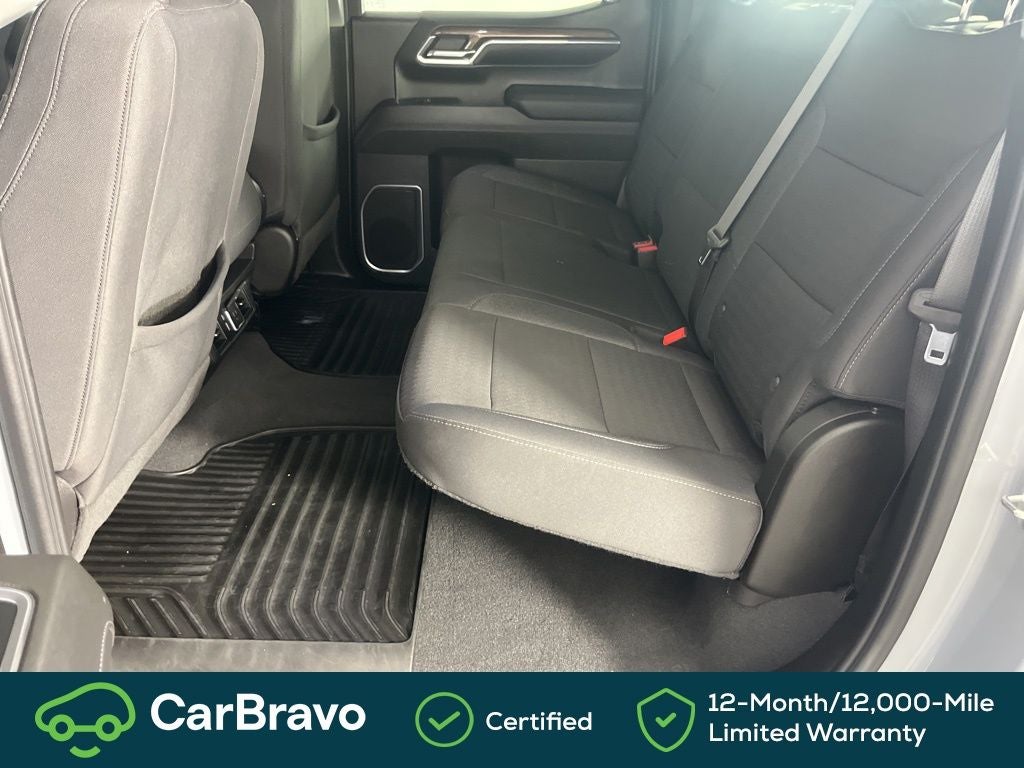 Clean CARFAX. CARFAX One-Owner. 8-Speed Automatic, 4WD, Black Cloth, 10-Way Power Driver Seat w/Lumbar, 12.3 Multicolor Reconfigurable Digital Display, 120-Volt Bed Mounted Power Outlet, 120-Volt Interior Power Outlet, 3.42 Rear Axle Ratio, 4-Wheel Disc Brakes, 40/20/40 Front Split-Bench Seat, 6 Speakers, 6-Speaker Audio System, ABS brakes, Air Conditioning, All-Star Edition, Alloy wheels, AM/FM radio: SiriusXM with 360L, Auto High-beam Headlights, Auto-Locking Rear Differential, Automatic Emergency Braking, Automatic temperature control, Bluetooth® For Phone, Brake assist, Bumpers: chrome, Chevrolet Connected Access Capable, Chrome Mirror Caps, Cloth Seat Trim, Color-Keyed Carpeting Floor Covering, Compass, Convenience Package, Deep-Tinted Glass, Delay-off headlights, Driver door bin, Driver vanity mirror, Dual front impact airbags, Dual front side impact airbags, Dual Rear USB Ports (Charge Only), Dual-Zone Automatic Climate Control, Electric Rear-Window Defogger, Electrical Steering Column Lock, Electronic Cruise Control, Electronic Stability Control, Following Distance Indicator, Forward Collision Alert, Front anti-roll bar, Front Center Armrest w/Storage, Front dual zone A/C, Front Frame-Mounted Black Recovery Hooks, Front Pedestrian Braking, Front reading lights, Front wheel independent suspension, Fully automatic headlights, HD Rear Vision Camera, Heated door mirrors, Heated Driver & Front Outboard Passenger Seats, Heated front seats, Heated Steering Wheel, Heated steering wheel, High Capacity Suspension Package, Hitch Guidance, Illuminated entry, IntelliBeam Automatic High Beam On/Off, Keyless Open & Start, Lane Keep Assist w/Lane Departure Warning, LED Cargo Area Lighting, Low tire pressure warning, Occupant sensing airbag, OnStar & Chevrolet Connected Services Capable, Outside temperature display, Overhead airbag, Overhead console, Panic alarm, Passenger door bin, Passenger vanity mirror, Power door mirrors, Power driver seat, Power Front Windows w/Driver Express Up/Down, Power Front Windows w/Passenger Express Down, Power Rear Windows w/Express Down, Power steering, Power windows, Premium audio system: Chevrolet Infotainment 3 Premium, Radio data system, Radio: Chevrolet Infotainment 3 Premium System, Rear 60/40 Folding Bench Seat (Folds Up), Rear reading lights, Rear step bumper, Rear window defroster, Remote keyless entry, Remote Vehicle Starter System, Security system, SiriusXM w/360L, Speed control, Speed-sensing steering, Split folding rear seat, Standard Suspension Package, Steering Wheel Audio Controls, Steering wheel mounted audio controls, Tachometer, Telescoping steering wheel, Theft Deterrent System (Unauthorized Entry), Tilt steering wheel, Traction control, Trailering Package, Trip computer, Variably intermittent wipers, Voltmeter, Wheels: 18 x 8.5 Bright Silver Painted Aluminum, Wheels: 20 x 9 Painted Aluminum, Wi-Fi Hot Spot Capable, Wrapped Steering Wheel, 8-Speed Automatic, 4WD, Black Cloth. Slate Gray Metallic 2024 Chevrolet Silverado 1500 LT 4WD 8-Speed Automatic 2.7L I4 Turbocharged DOHC 16V LEV3-SULEV30 310hp