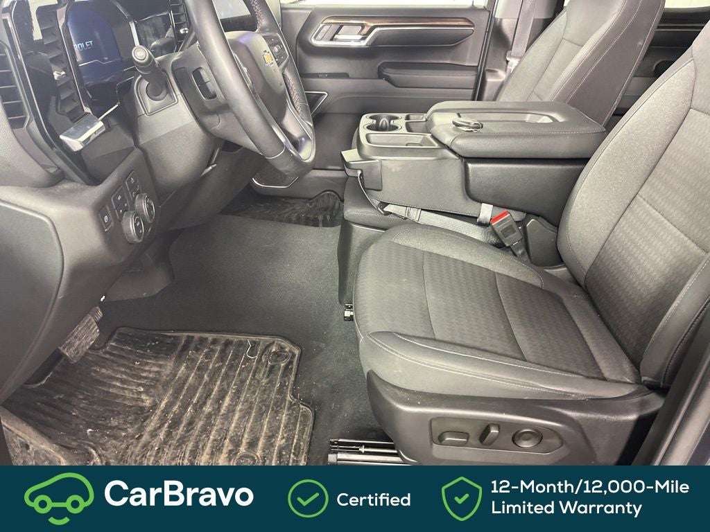 Clean CARFAX. CARFAX One-Owner. Certified. Priced below KBB Fair Purchase Price! Yes Certified, 8-Speed Automatic, 4WD, Black Cloth, 10-Way Power Driver Seat w/Lumbar, 12.3 Multicolor Reconfigurable Digital Display, 120-Volt Bed Mounted Power Outlet, 120-Volt Interior Power Outlet, 3.42 Rear Axle Ratio, 4-Wheel Disc Brakes, 40/20/40 Front Split-Bench Seat, 6 Speakers, 6-Speaker Audio System, ABS brakes, Air Conditioning, All-Star Edition, Alloy wheels, AM/FM radio: SiriusXM with 360L, Auto High-beam Headlights, Auto-Locking Rear Differential, Automatic Emergency Braking, Automatic temperature control, Bluetooth® For Phone, Brake assist, Bumpers: chrome, Chevrolet Connected Access Capable, Chrome Mirror Caps, Cloth Seat Trim, Color-Keyed Carpeting Floor Covering, Compass, Convenience Package, Deep-Tinted Glass, Delay-off headlights, Driver door bin, Driver vanity mirror, Dual front impact airbags, Dual front side impact airbags, Dual Rear USB Ports (Charge Only), Dual-Zone Automatic Climate Control, Electric Rear-Window Defogger, Electrical Steering Column Lock, Electronic Cruise Control, Electronic Stability Control, Following Distance Indicator, Forward Collision Alert, Front anti-roll bar, Front Center Armrest w/Storage, Front dual zone A/C, Front Frame-Mounted Black Recovery Hooks, Front Pedestrian Braking, Front reading lights, Front wheel independent suspension, Fully automatic headlights, HD Rear Vision Camera, Heated door mirrors, Heated Driver & Front Outboard Passenger Seats, Heated front seats, Heated Steering Wheel, Heated steering wheel, High Capacity Suspension Package, Hitch Guidance, Illuminated entry, IntelliBeam Automatic High Beam On/Off, Keyless Open & Start, Lane Keep Assist w/Lane Departure Warning, LED Cargo Area Lighting, Low tire pressure warning, Occupant sensing airbag, OnStar & Chevrolet Connected Services Capable, Outside temperature display, Overhead airbag, Overhead console, Panic alarm, Passenger door bin, Passenger vanity mirror, Power door mirrors, Power driver seat, Power Front Windows w/Driver Express Up/Down, Power Front Windows w/Passenger Express Down, Power Rear Windows w/Express Down, Power steering, Power windows, Premium audio system: Chevrolet Infotainment 3 Premium, Radio data system, Radio: Chevrolet Infotainment 3 Premium System, Rear 60/40 Folding Bench Seat (Folds Up), Rear reading lights, Rear step bumper, Rear window defroster, Remote keyless entry, Remote Vehicle Starter System, Security system, SiriusXM w/360L, Speed control, Speed-sensing steering, Split folding rear seat, Standard Suspension Package, Steering Wheel Audio Controls, Steering wheel mounted audio controls, Tachometer, Telescoping steering wheel, Theft Deterrent System (Unauthorized Entry), Tilt steering wheel, Traction control, Trailering Package, Trip computer, Variably intermittent wipers, Voltmeter, Wheels: 18 x 8.5 Bright Silver Painted Aluminum, Wheels: 20 x 9 Painted Aluminum, Wi-Fi Hot Spot Capable, Wrapped Steering Wheel, 8-Speed Automatic, 4WD, Black Cloth. Dark Ash Metallic 2024 Chevrolet Silverado 1500 LT 4WD 8-Speed Automatic 2.7L I4 Turbocharged DOHC 16V LEV3-SULEV30 310hp