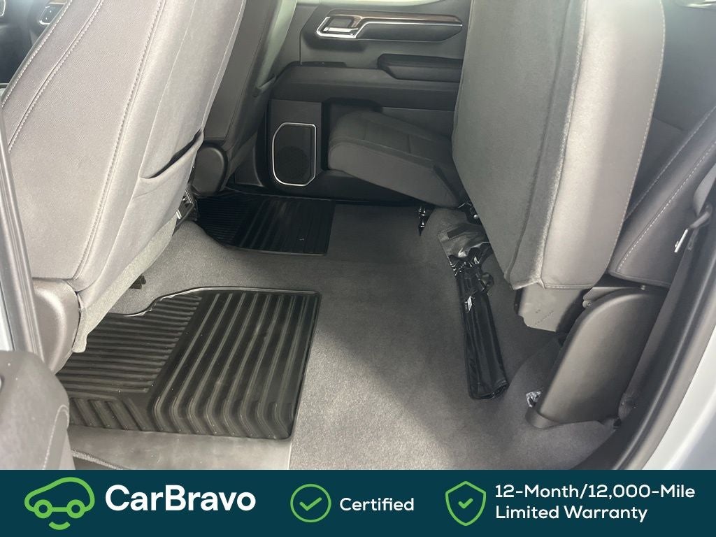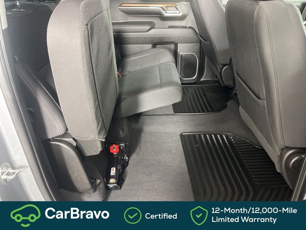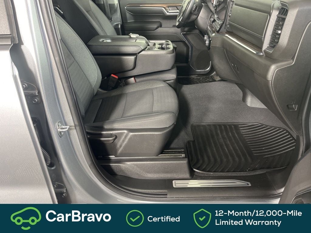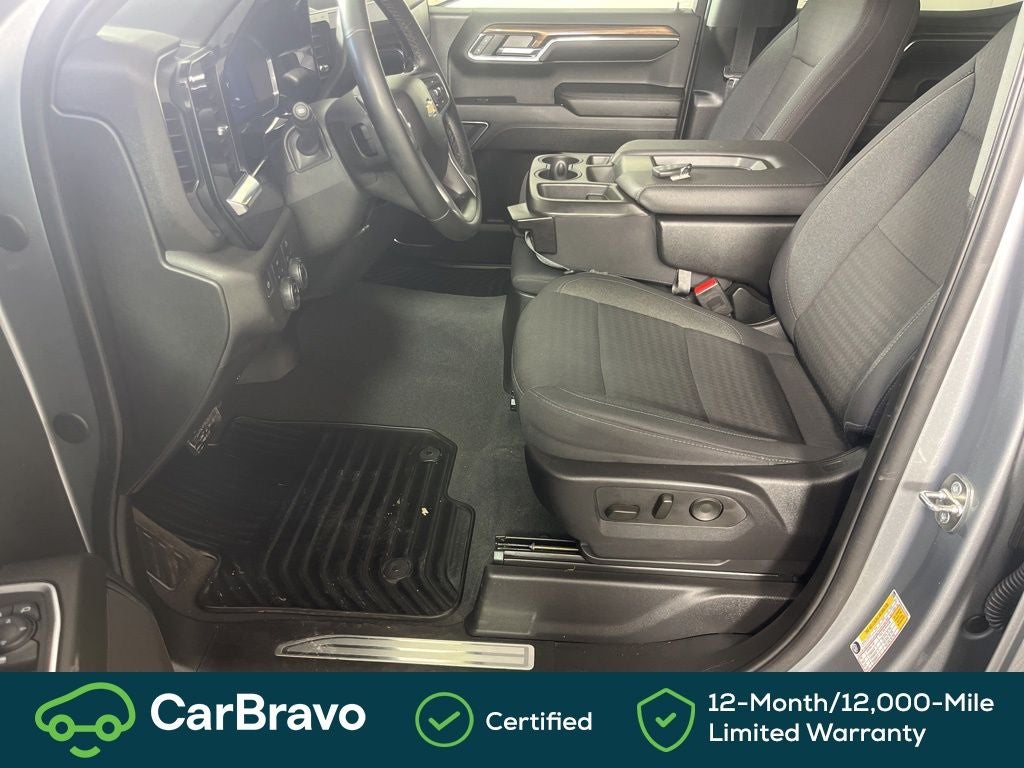 Clean CARFAX. Certified. Yes Certified, 8-Speed Automatic, 4WD, Black Cloth, 10-Way Power Driver Seat w/Lumbar, 12.3 Multicolor Reconfigurable Digital Display, 120-Volt Bed Mounted Power Outlet, 120-Volt Interior Power Outlet, 3.42 Rear Axle Ratio, 4-Wheel Disc Brakes, 40/20/40 Front Split-Bench Seat, 6 Speakers, 6-Speaker Audio System, ABS brakes, Air Conditioning, All-Star Edition, Alloy wheels, AM/FM radio: SiriusXM with 360L, Auto High-beam Headlights, Auto-Locking Rear Differential, Automatic Emergency Braking, Automatic temperature control, Bluetooth® For Phone, Brake assist, Bumpers: chrome, Chevrolet Connected Access Capable, Chrome Mirror Caps, Cloth Seat Trim, Color-Keyed Carpeting Floor Covering, Compass, Convenience Package, Deep-Tinted Glass, Delay-off headlights, Driver door bin, Driver vanity mirror, Dual front impact airbags, Dual front side impact airbags, Dual Rear USB Ports (Charge Only), Dual-Zone Automatic Climate Control, Electric Rear-Window Defogger, Electrical Steering Column Lock, Electronic Cruise Control, Electronic Stability Control, Following Distance Indicator, Forward Collision Alert, Front anti-roll bar, Front Center Armrest w/Storage, Front dual zone A/C, Front Frame-Mounted Black Recovery Hooks, Front License Plate Kit, Front Pedestrian Braking, Front reading lights, Front wheel independent suspension, Fully automatic headlights, HD Rear Vision Camera, Heated door mirrors, Heated Driver & Front Outboard Passenger Seats, Heated front seats, Heated Steering Wheel, Heated steering wheel, High Capacity Suspension Package, Hitch Guidance, Illuminated entry, IntelliBeam Automatic High Beam On/Off, Keyless Open & Start, Lane Keep Assist w/Lane Departure Warning, LED Cargo Area Lighting, Low tire pressure warning, Not Equipped w/Steering Column Lock, Occupant sensing airbag, OnStar & Chevrolet Connected Services Capable, Outside temperature display, Overhead airbag, Overhead console, Panic alarm, Passenger door bin, Passenger vanity mirror, Power door mirrors, Power driver seat, Power Front Windows w/Driver Express Up/Down, Power Front Windows w/Passenger Express Down, Power Rear Windows w/Express Down, Power steering, Power windows, Premium audio system: Chevrolet Infotainment 3 Premium, Radio data system, Radio: Chevrolet Infotainment 3 Premium System, Rear 60/40 Folding Bench Seat (Folds Up), Rear reading lights, Rear step bumper, Rear window defroster, Remote keyless entry, Remote Vehicle Starter System, Security system, SiriusXM w/360L, Speed control, Speed-sensing steering, Split folding rear seat, Standard Suspension Package, Steering Wheel Audio Controls, Steering wheel mounted audio controls, Tachometer, Telescoping steering wheel, Theft Deterrent System (Unauthorized Entry), Tilt steering wheel, Traction control, Trailering Package, Trip computer, Variably intermittent wipers, Voltmeter, Wheels: 18 x 8.5 Bright Silver Painted Aluminum, Wheels: 20 x 9 Painted Aluminum, Wi-Fi Hot Spot Capable, Wrapped Steering Wheel, 8-Speed Automatic, 4WD, Black Cloth. Sterling Gray Metallic 2024 Chevrolet Silverado 1500 LT 4WD 8-Speed Automatic 2.7L I4 Turbocharged DOHC 16V LEV3-SULEV30 310hp