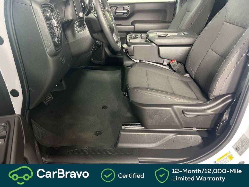 Clean CARFAX. CARFAX One-Owner. Certified. Yes Certified, 8-Speed Automatic, 4WD, Black Cloth, 2 Speakers, 2-Speaker Audio System, 220 Amp Alternator, 3.42 Rear Axle Ratio, 3.5 Monochromatic Display Driver Info Center, 4-Wheel Disc Brakes, 40/20/40 Front Split Bench Seat, ABS brakes, Air Conditioning, All-Weather Floor Liner (LPO), Auto High-beam Headlights, Auto-Locking Rear Differential, Automatic Emergency Braking, Black (Semi-Gloss) Front Bumper, Black (Semi-Gloss) Rear Bumper, Bluetooth® For Phone, Brake assist, Chevrolet Connected Access Capable, Color-Keyed Carpeting Floor Covering, Compass, Delay-off headlights, Driver door bin, Dual front impact airbags, Dual front side impact airbags, Electrical Steering Column Lock, Electronic Stability Control, Following Distance Indicator, Forward Collision Alert, Front anti-roll bar, Front Center Armrest w/Storage, Front Frame-Mounted Black Recovery Hooks, Front License Plate Kit, Front Pedestrian Braking, Front reading lights, Front Rubberized Vinyl Floor Mats, Front wheel independent suspension, Fully automatic headlights, HD Rear Vision Camera, Heated door mirrors, Heated Power-Adjustable Outside Mirrors, Heavy-Duty Air Filter, Hitch Guidance, Illuminated entry, Inside Rear-View Mirror w/Tilt, IntelliBeam Automatic High Beam On/Off, Lane Keep Assist w/Lane Departure Warning, Liner Protection Package (LPO), Locking Tailgate, Low tire pressure warning, Manual Tailgate Function w/No EZ Lift, Manual Tilt Wheel Steering Column, Occupant sensing airbag, OnStar & Chevrolet Connected Services Capable, Outside temperature display, Overhead airbag, Overhead console, Panic alarm, Passenger door bin, Passenger vanity mirror, Power door mirrors, Power Front Windows w/Driver Express Up/Down, Power steering, Power windows, Preferred Equipment Group 1WT, Premium audio system: Chevrolet Infotainment 3, Radio data system, Radio: Chevrolet Infotainment 3 System, Rear reading lights, Rear step bumper, Rear Wheel House Liners (LPO), Remote Keyless Entry, Remote keyless entry, Rubberized-Vinyl Floor Covering, SiriusXM Delete, Solar Absorbing Tinted Glass, Speed-sensing steering, Standard Suspension Package, Standard Tailgate, Tachometer, Tilt steering wheel, Traction control, Trailering Package, Trip computer, Variably intermittent wipers, Vinyl Seat Trim, Voltmeter, Wheels: 17 x 8 Ultra Silver Painted Steel, Wi-Fi Hot Spot Capable, Work Truck Package, 8-Speed Automatic, 4WD, Black Cloth. Summit White 2024 Chevrolet Silverado 1500 WT 4WD 8-Speed Automatic 2.7L I4 Turbocharged DOHC 16V LEV3-SULEV30 310hp