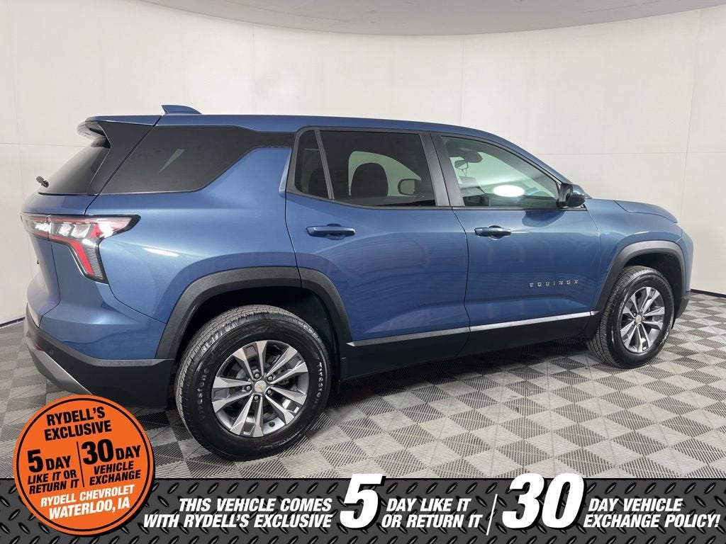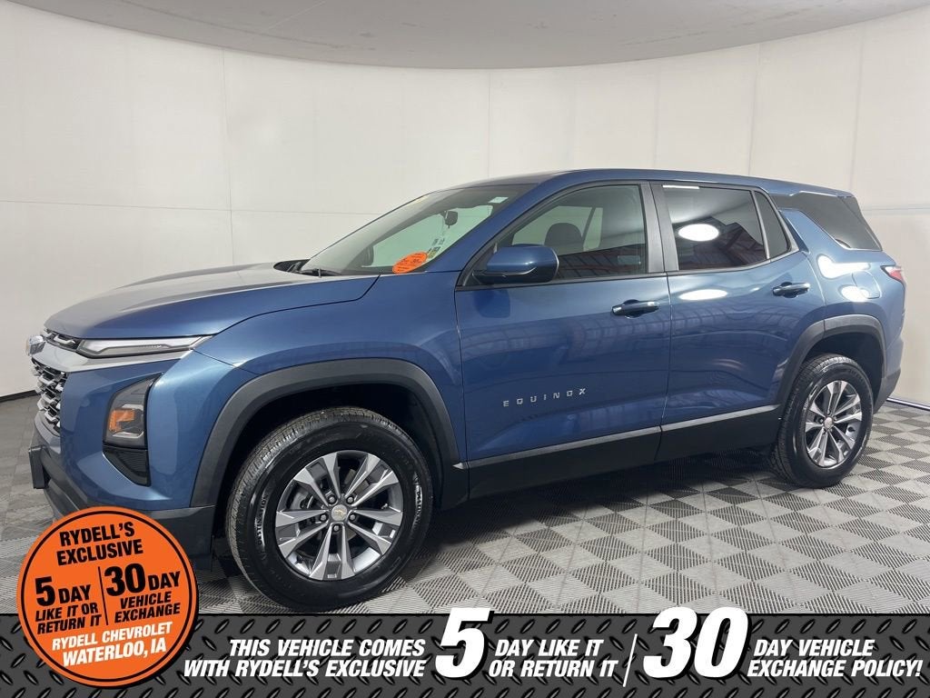 Clean CARFAX. CARFAX One-Owner. 26/28 City/Highway MPG One Owner, Apple CarPlay, Android Auto, 4-Wheel Disc Brakes, 5.81 Final Drive Axle Ratio, 6 Speakers, ABS brakes, Air Conditioning, All-Weather Floor Liners (LPO), Alloy wheels, AM/FM radio: SiriusXM, Auto High-beam Headlights, Brake assist, Bumpers: body-color, Cargo Mat, Cloth Seat Trim, Compass, Delay-off headlights, Driver 6-Way Manual Seat Adjuster, Driver door bin, Driver vanity mirror, Dual front impact airbags, Dual front side impact airbags, Electronic Stability Control, Emergency communication system: OnStar and Chevrolet connected services capable, Floor Liner Package (LPO), Four wheel independent suspension, Front anti-roll bar, Front Bucket Seats, Front Center Armrest, Front Passenger 4-Way Manual Seat Adjuster, Front reading lights, Fully automatic headlights, Heated door mirrors, Heated Driver & Front Passenger Seats, Heated front seats, Heated steering wheel, Illuminated entry, Low tire pressure warning, Navigation System, Occupant sensing airbag, Outside temperature display, Overhead airbag, Overhead console, Panic alarm, Passenger door bin, Passenger vanity mirror, Power door mirrors, Power steering, Power windows, Preferred Equipment Group 1LT, Premium audio system: Chevrolet Infotainment 3, Radio data system, Radio: 11.3 Diagonal Advanced Color LCD Display, Rear anti-roll bar, Rear reading lights, Rear seat center armrest, Rear window defroster, Rear window wiper, Remote keyless entry, Second Row All-Weather Mat (LPO), Security system, SiriusXM, Speed control, Speed-sensing steering, Split folding rear seat, Spoiler, Steering wheel mounted audio controls, Tachometer, Telescoping steering wheel, Tilt steering wheel, Traction control, Trip computer, Variably intermittent wipers, Wheels: 17 Grazen Metallic Machined-Face Aluminum. Lakeshore Blue Metallic 2025 Chevrolet Equinox LT FWD CVT 1.5L DOHC
