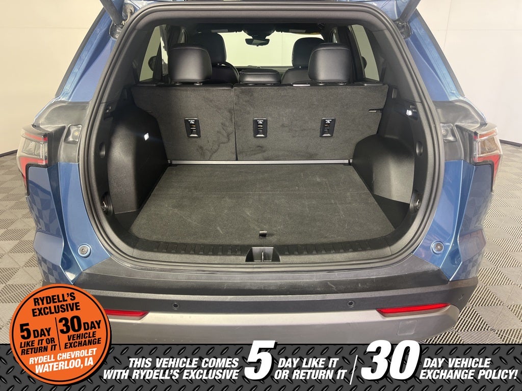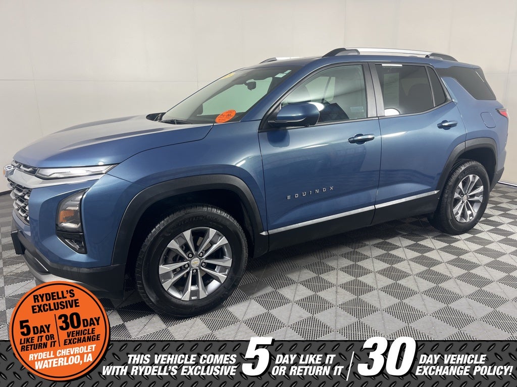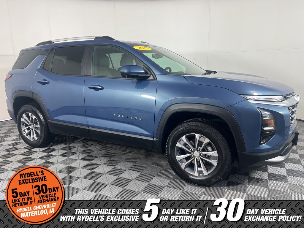 Clean CARFAX. CARFAX One-Owner. 24/29 City/Highway MPG AWD, 2-Way Power Driver Lumbar Control Seat Adjuster, 3.47 Final Drive Axle Ratio, 4-Wheel Disc Brakes, 6 Speakers, ABS brakes, Air Conditioning, Alloy wheels, AM/FM radio: SiriusXM, Auto High-beam Headlights, AutoSense Hands-Free Power Programmable Liftgate, Brake assist, Bumpers: body-color, Cabin Humidity & Windshield Sensor, Cloth Seat Trim, Compass, Convenience Package II, Delay-off headlights, Driver 6-Way Manual Seat Adjuster, Driver 8-Way Power Seat Adjuster, Driver door bin, Driver vanity mirror, Dual front impact airbags, Dual front side impact airbags, Dual-Zone Automatic Climate Control, Electronic Stability Control, Emergency communication system: OnStar and Chevrolet connected services capable, Evotex Seat Trim, Four wheel independent suspension, Front anti-roll bar, Front Bucket Seats, Front Center Armrest, Front Fog Lamps, Front Passenger 4-Way Manual Seat Adjuster, Front reading lights, Fully automatic headlights, HD Surround Vision, Heated door mirrors, Heated Driver & Front Passenger Seats, Heated front seats, Heated steering wheel, Heated Wiper Park, Illuminated entry, Intermittent Front Rain-Sensing Wipers, Low tire pressure warning, Navigation System, Occupant sensing airbag, Outside temperature display, Overhead airbag, Overhead console, Overhead Sunglass Storage, Panic alarm, Passenger door bin, Passenger vanity mirror, Power door mirrors, Power steering, Power windows, Preferred Equipment Group 2LT, Premium audio system: Chevrolet Infotainment 3, Programmable Universal Home Remote, Radio data system, Radio: 11.3 Diagonal Advanced Color LCD Display, Rear anti-roll bar, Rear Camera Mirror Washer, Rear Pedestrian Alert, Rear reading lights, Rear seat center armrest, Rear window defroster, Rear window wiper, Remote keyless entry, Roof Rails, Safety & Technology Package, Security system, SiriusXM, Speed control, Speed-sensing steering, Split folding rear seat, Spoiler, Steering wheel mounted audio controls, Tachometer, Telescoping steering wheel, Tilt steering wheel, Traction control, Traffic Sign Recognition, Trip computer, Universal Home Remote Non-Functional, Variably intermittent wipers, Wheels: 17 Grazen Metallic Machined-Face Aluminum, Wireless Charging for Devices, AWD. Lakeshore Blue Metallic 2025 Chevrolet Equinox LT AWD 8-Speed Automatic 1.5L DOHC