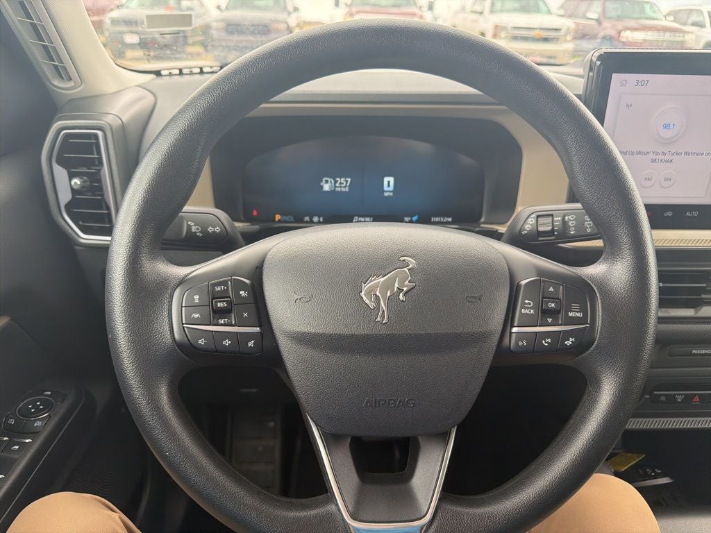 AWD, Apple CarPlay, Android Auto, Backup Camera, Equipment Group 200A, 4-Wheel Disc Brakes, 6 Speakers, ABS brakes, Air Conditioning, Alloy wheels, AM/FM radio: SiriusXM, AM/FM Stereo, Auto High-beam Headlights, Automatic temperature control, Brake assist, Cloth w/Easy-to-Clean Front Bucket Seats, Compass, Delay-off headlights, Driver door bin, Driver vanity mirror, Dual front impact airbags, Dual front side impact airbags, Electronic Stability Control, Emergency communication system: SYNC 4 911 Assist, Four wheel independent suspension, Front anti-roll bar, Front Bucket Seats, Front Center Armrest, Front reading lights, Fully automatic headlights, Heated door mirrors, Illuminated entry, Knee airbag, Low tire pressure warning, Occupant sensing airbag, Outside temperature display, Overhead airbag, Overhead console, Panic alarm, Passenger door bin, Passenger vanity mirror, Power door mirrors, Power steering, Power windows, Radio data system, Rear anti-roll bar, Rear Parking Sensors, Rear reading lights, Rear seat center armrest, Rear window defroster, Rear window wiper, Remote keyless entry, Security system, SiriusXM, Speed control, Speed-sensing steering, Speed-Sensitive Wipers, Split folding rear seat, Steering wheel mounted audio controls, SYNC 4 w/Enhanced Voice Recognition, Tachometer, Telescoping steering wheel, Tilt steering wheel, Traction control, Trip computer, Variably intermittent wipers, Wheels: 17 Carbonized Gray-Painted Aluminum, Equipment Group 200A. Clean CARFAX. 4WD 25/30 City/Highway MPG 1.5L EcoBoost 25/30 City/Highway MPG Ford Recent Arrival! 2025 Ford Bronco Sport Big Bend Bronco Sport 8-Speed Automatic 2025 4D Sport Utility Shadow Black