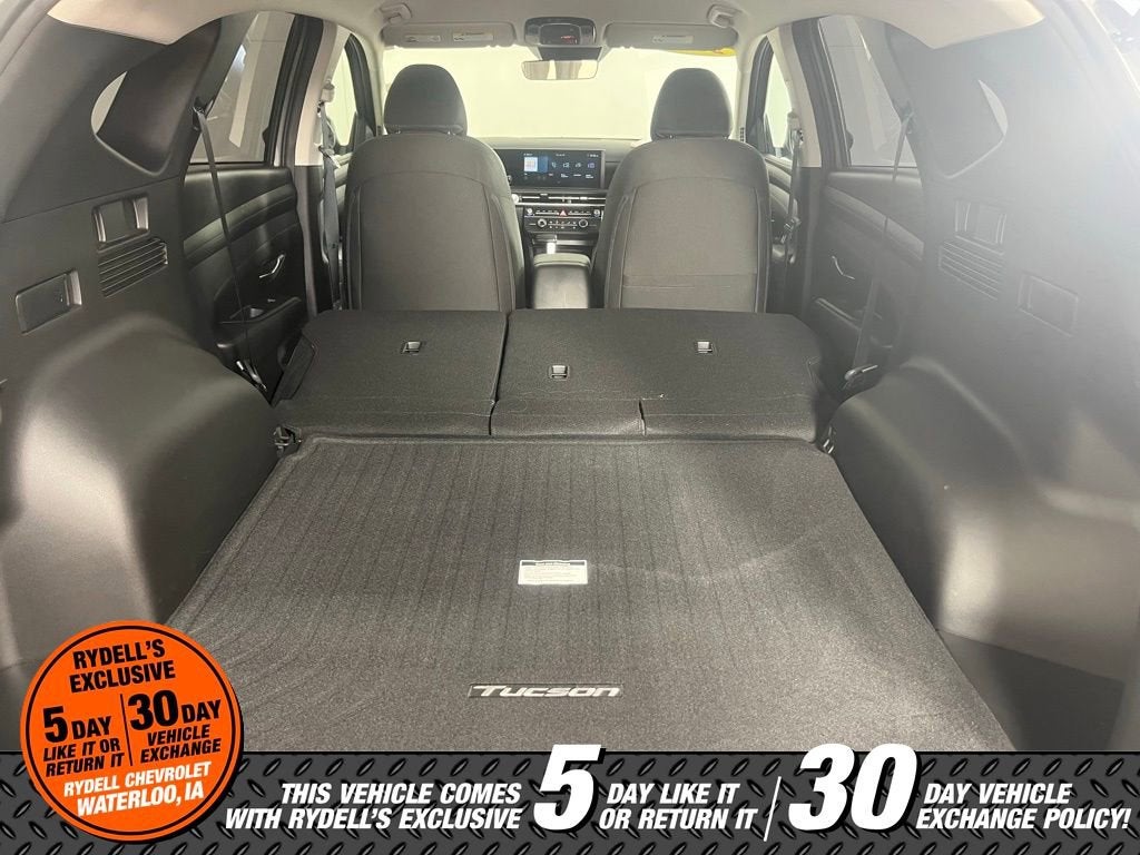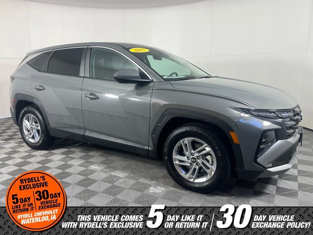 Clean CARFAX. CARFAX One-Owner. 25/33 City/Highway MPG 17 Alloy Wheels, 4-Wheel Disc Brakes, 6 Speakers, ABS brakes, Air Conditioning, All Season Fitted Liners, Alloy wheels, AM/FM radio: SiriusXM, Apple CarPlay & Android Auto, Auto High-beam Headlights, Brake assist, Bumpers: body-color, Cargo Net, Cargo Tray, Carpeted Floor Mats, Delay-off headlights, Driver door bin, Driver vanity mirror, Dual front impact airbags, Dual front side impact airbags, Electronic Stability Control, Emergency communication system: Bluelink+, First Aid Kit, Four wheel independent suspension, Front anti-roll bar, Front Bucket Seats, Front Center Armrest, Front reading lights, Fully automatic headlights, Illuminated entry, Low tire pressure warning, Occupant sensing airbag, Option Group 01, Outside temperature display, Overhead airbag, Overhead console, Panic alarm, Passenger door bin, Passenger vanity mirror, Power door mirrors, Power steering, Power windows, Radio data system, Radio: AM/FM/HD Audio System, Rear anti-roll bar, Rear reading lights, Rear seat center armrest, Rear side impact airbag, Rear window defroster, Rear window wiper, Remote keyless entry, Security system, Speed control, Split folding rear seat, Spoiler, Stain & Odor Resistant Cloth Seat Trim, Steering wheel mounted audio controls, Tachometer, Telescoping steering wheel, Tilt steering wheel, Traction control, Trip computer, Variably intermittent wipers. Hampton Gray 2025 Hyundai Tucson SE FWD 8-Speed Automatic with SHIFTRONIC 2.5L I4 DGI DOHC 16V LEV3-SULEV30 187hp