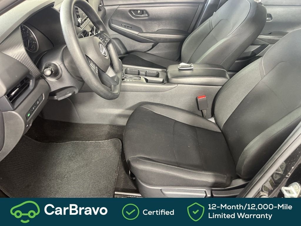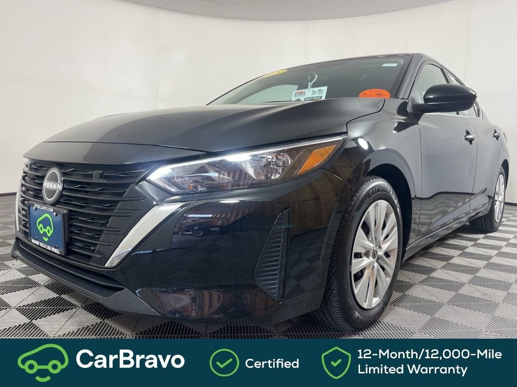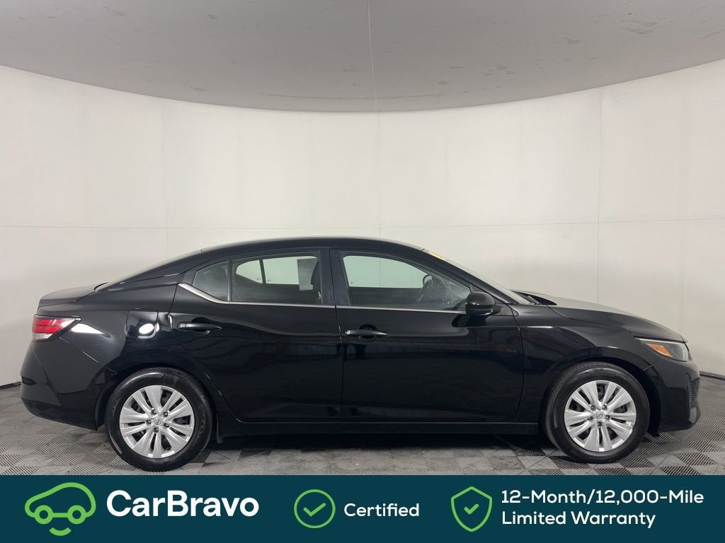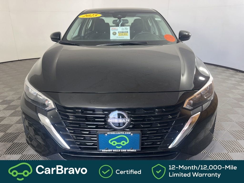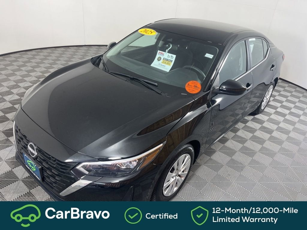CARFAX One-Owner. Certified. 30/40 City/Highway MPG Yes Certified, CVT with Xtronic, Charcoal Cloth, 4 Speakers, ABS brakes, Air Conditioning, AM/FM radio, Auto High-beam Headlights, Blind Spot Warning, Brake assist, Bumpers: body-color, Cloth Seat Trim, Delay-off headlights, Driver door bin, Driver vanity mirror, Dual front impact airbags, Dual front side impact airbags, Electronic Stability Control, Four wheel independent suspension, Front anti-roll bar, Front Bucket Seats, Front Center Armrest, Front reading lights, Fully automatic headlights, Illuminated entry, Knee airbag, Low tire pressure warning, NissanConnect featuring Apple CarPlay and Android Auto, Occupant sensing airbag, Outside temperature display, Overhead airbag, Overhead console, Panic alarm, Passenger door bin, Passenger vanity mirror, Power door mirrors, Power steering, Power windows, Radio data system, Radio: AM/FM with RDS/MP3/Aux-in, Rear anti-roll bar, Rear Parking Sensors, Rear side impact airbag, Rear window defroster, Remote keyless entry, Speed control, Speed-sensing steering, Split folding rear seat, Steering wheel mounted audio controls, Tachometer, Telescoping steering wheel, Tilt steering wheel, Traction control, Trip computer, Variably intermittent wipers, Wheels: 16 Steel with Full Covers, CVT with Xtronic, Charcoal Cloth. Super Black 2025 Nissan Sentra S FWD CVT with Xtronic 2.0L I4 DOHC
