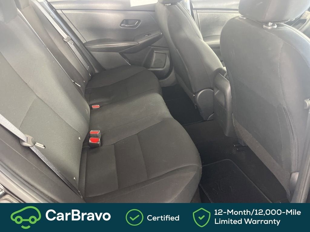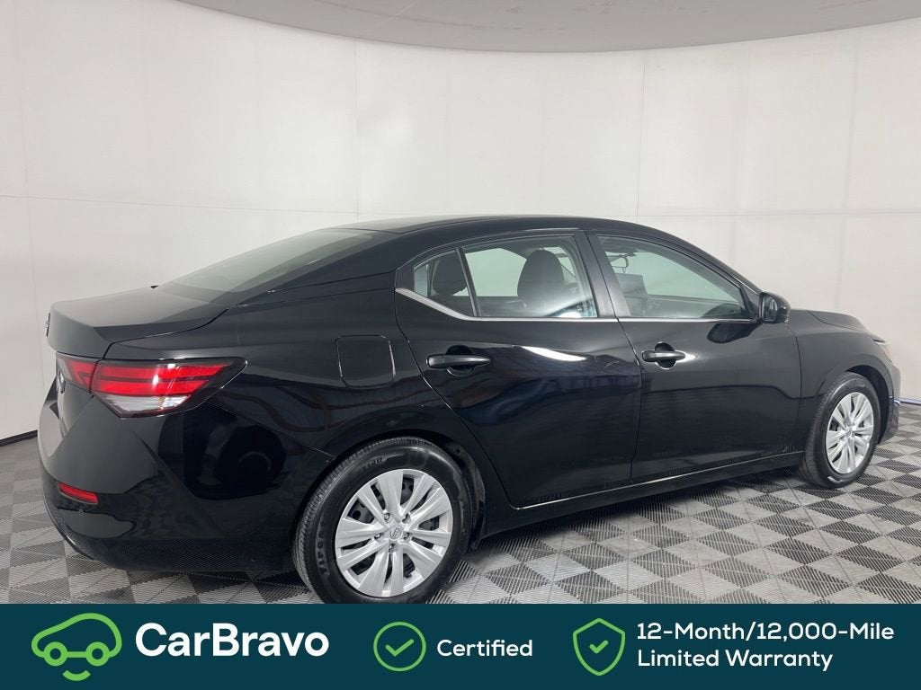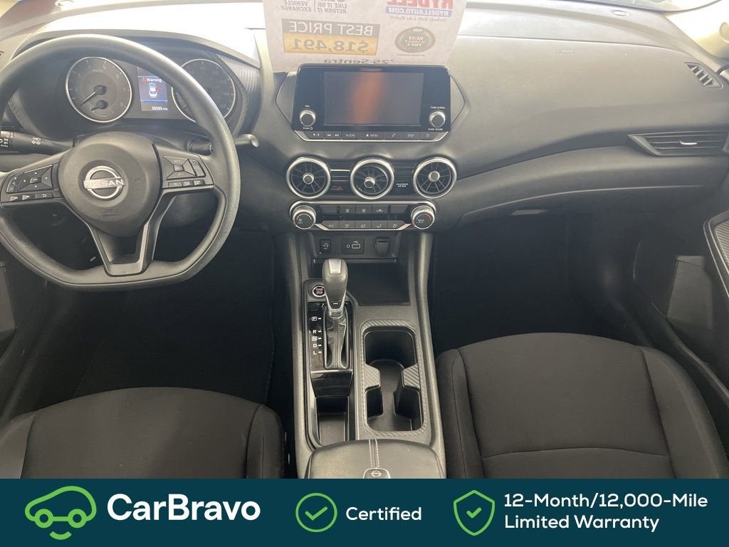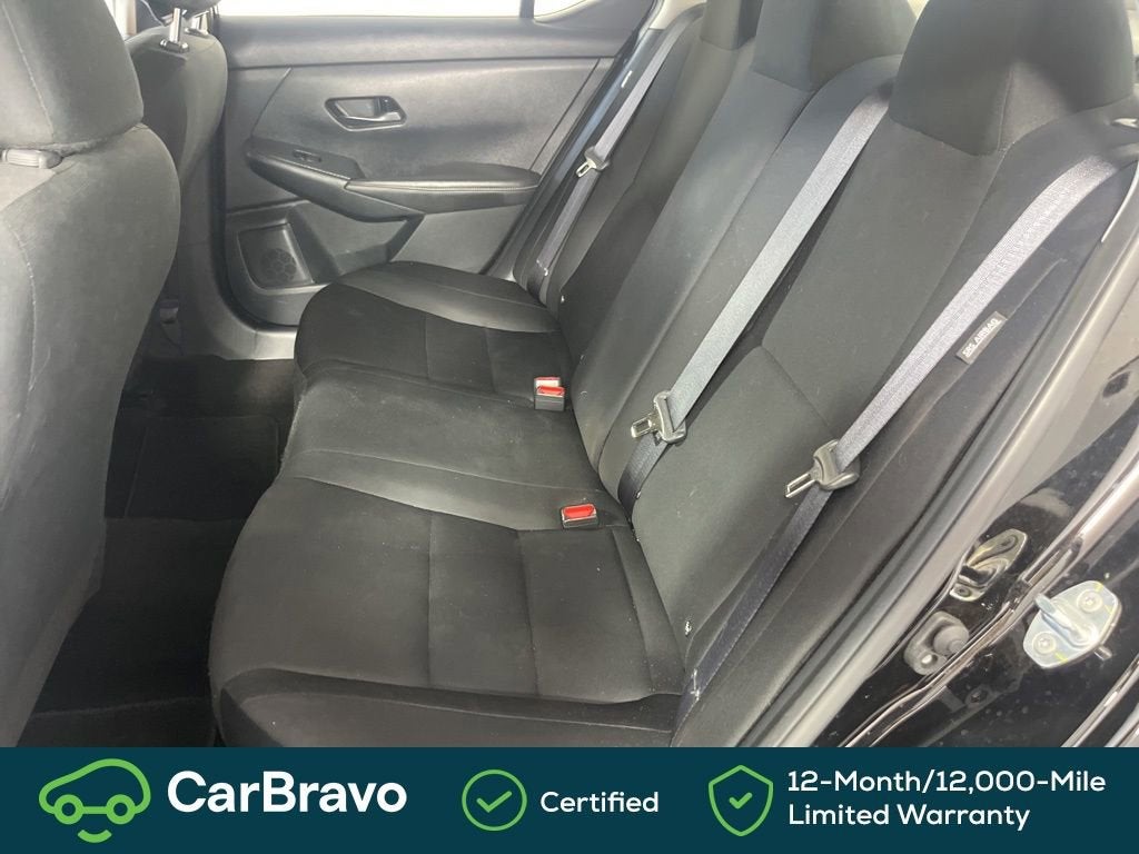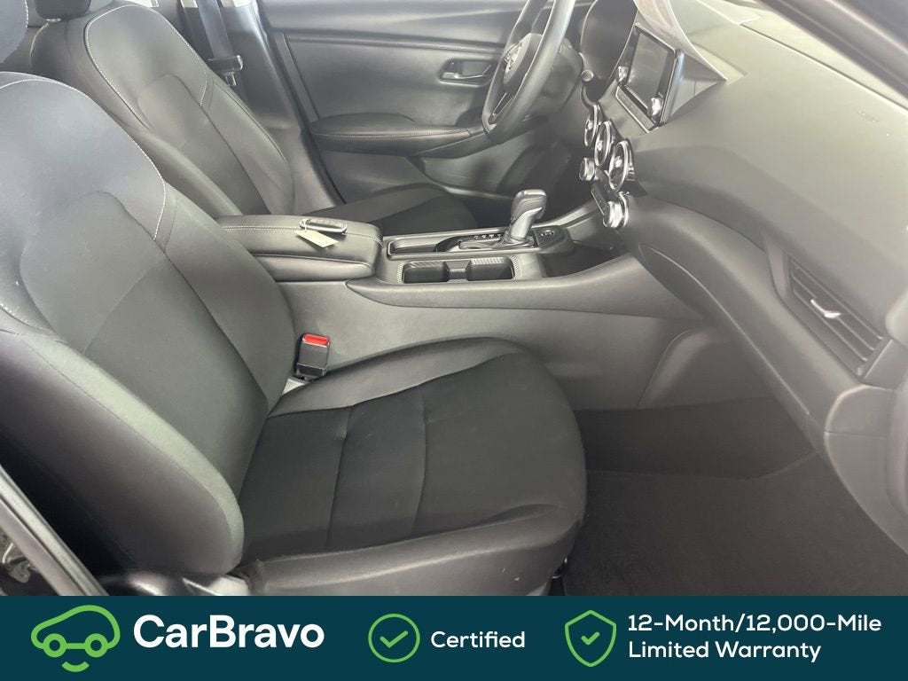CARFAX One-Owner. Certified. 30/40 City/Highway MPG Yes Certified, CVT with Xtronic, Charcoal Cloth, 4 Speakers, ABS brakes, Air Conditioning, AM/FM radio, Auto High-beam Headlights, Blind Spot Warning, Brake assist, Bumpers: body-color, Cloth Seat Trim, Delay-off headlights, Driver door bin, Driver vanity mirror, Dual front impact airbags, Dual front side impact airbags, Electronic Stability Control, Four wheel independent suspension, Front anti-roll bar, Front Bucket Seats, Front Center Armrest, Front reading lights, Fully automatic headlights, Illuminated entry, Knee airbag, Low tire pressure warning, NissanConnect featuring Apple CarPlay and Android Auto, Occupant sensing airbag, Outside temperature display, Overhead airbag, Overhead console, Panic alarm, Passenger door bin, Passenger vanity mirror, Power door mirrors, Power steering, Power windows, Radio data system, Radio: AM/FM with RDS/MP3/Aux-in, Rear anti-roll bar, Rear Parking Sensors, Rear side impact airbag, Rear window defroster, Remote keyless entry, Speed control, Speed-sensing steering, Split folding rear seat, Steering wheel mounted audio controls, Tachometer, Telescoping steering wheel, Tilt steering wheel, Traction control, Trip computer, Variably intermittent wipers, Wheels: 16 Steel with Full Covers, CVT with Xtronic, Charcoal Cloth. Super Black 2025 Nissan Sentra S FWD CVT with Xtronic 2.0L I4 DOHC